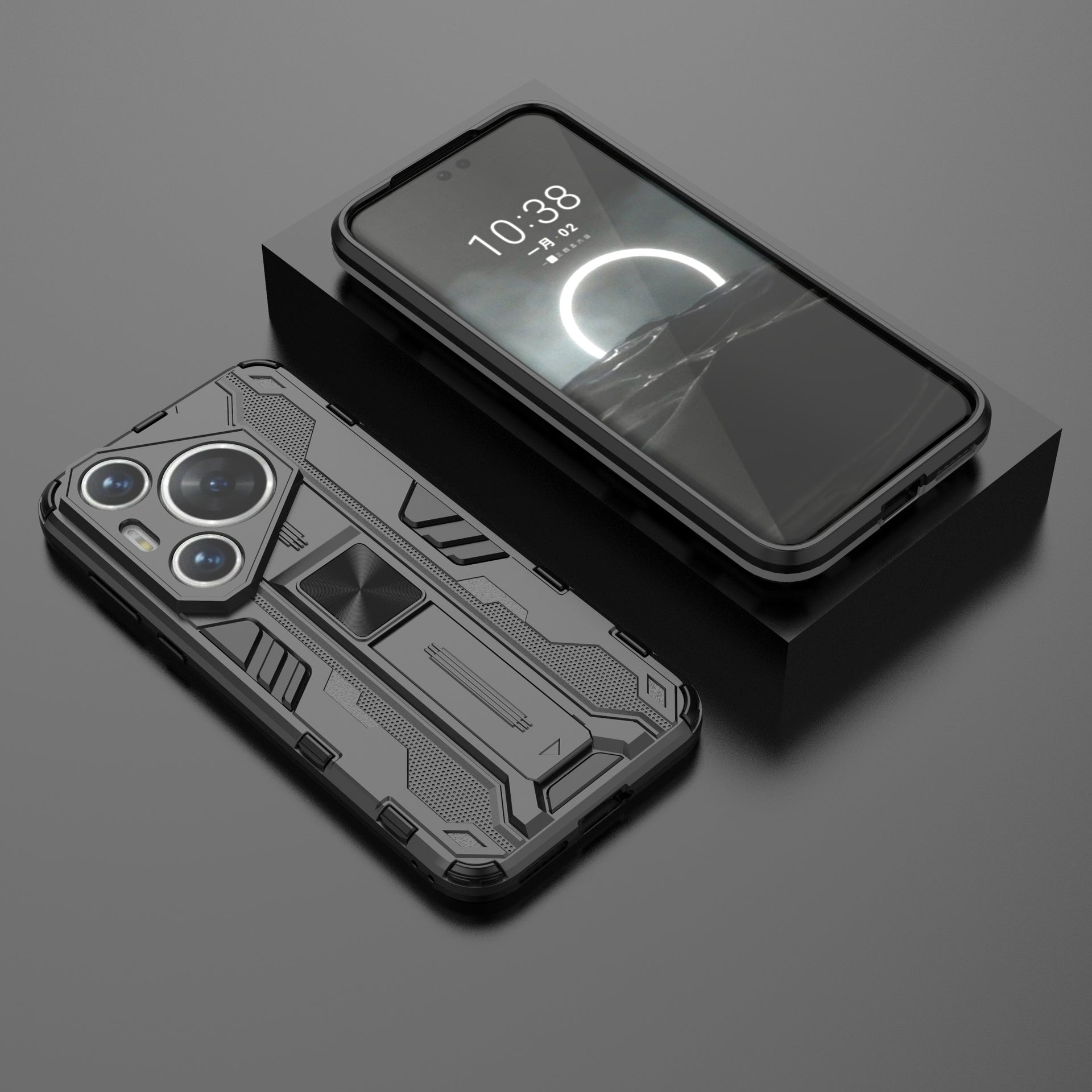 For Huawei Pura 70 Case Foldable Kickstand PC + TPU Hybrid Phone Cover - Black