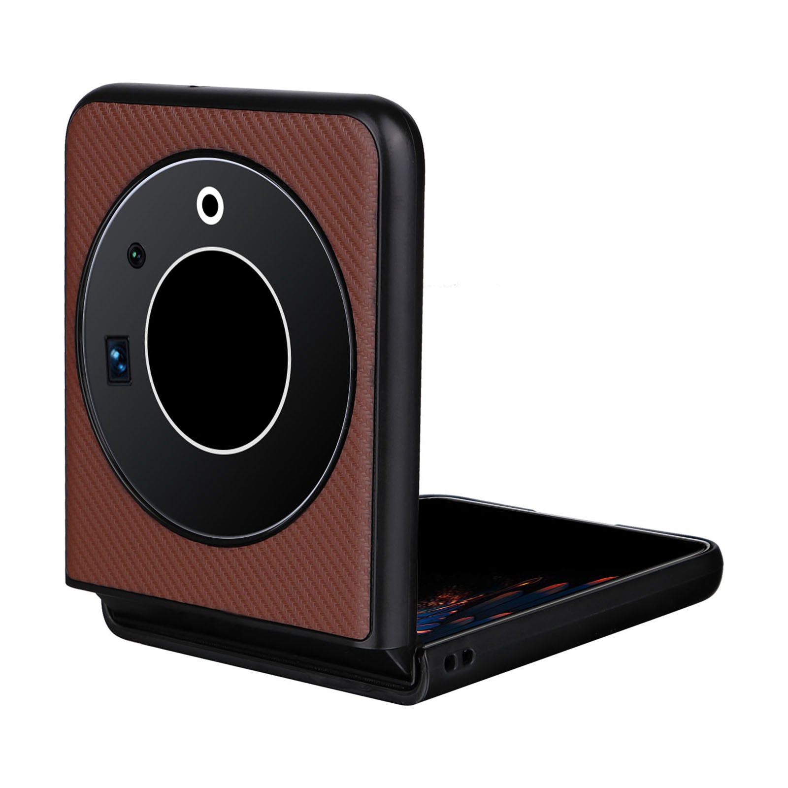 Uniqkart for Tecno Phantom V Flip Carbon Fiber Texture Case PU Leather Coated PC Anti-drop Phone Cover - Brown