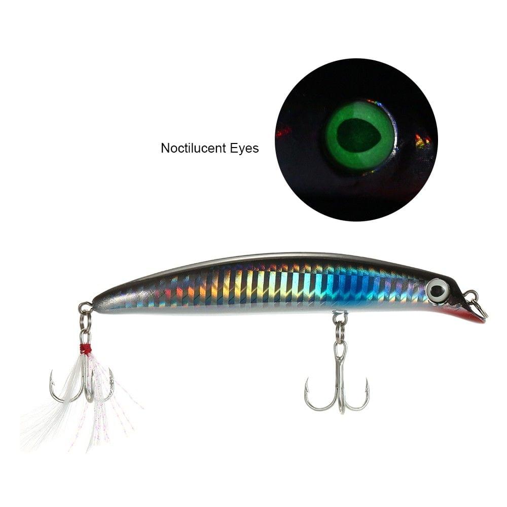 description":"The fishing lure features noctiluscent eyes and strong treble hooks, helpful to catch big fish. Features: Noctiluscent eyes and bright colors to attract fish. 2 strong barbed treble hooks. Smooth and rapid diving action, diving depth: 0 - 30 meters. Durable, reusable plastic body. Specifications: Color: Golden / Noctiluscent White / White & Red / Black & Orange / Black & White (optional) Material: Plastic Length: 10.5cm / 4.3in Weight: 13g / 0.4oz Package Size: 16.5 * 4.3 * 2.5cm / 6.5 * 1.7 * 1.0in Package Weight: 30g / 1.0oz Package List: 1 * Fishing Lure