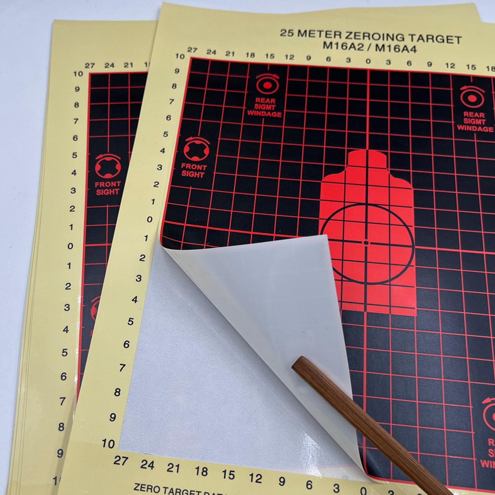 Self Adhesive Targets: You can stick on cardboards / Silhouette paper targets / metal target stand / resetting targets…for most of the surface.