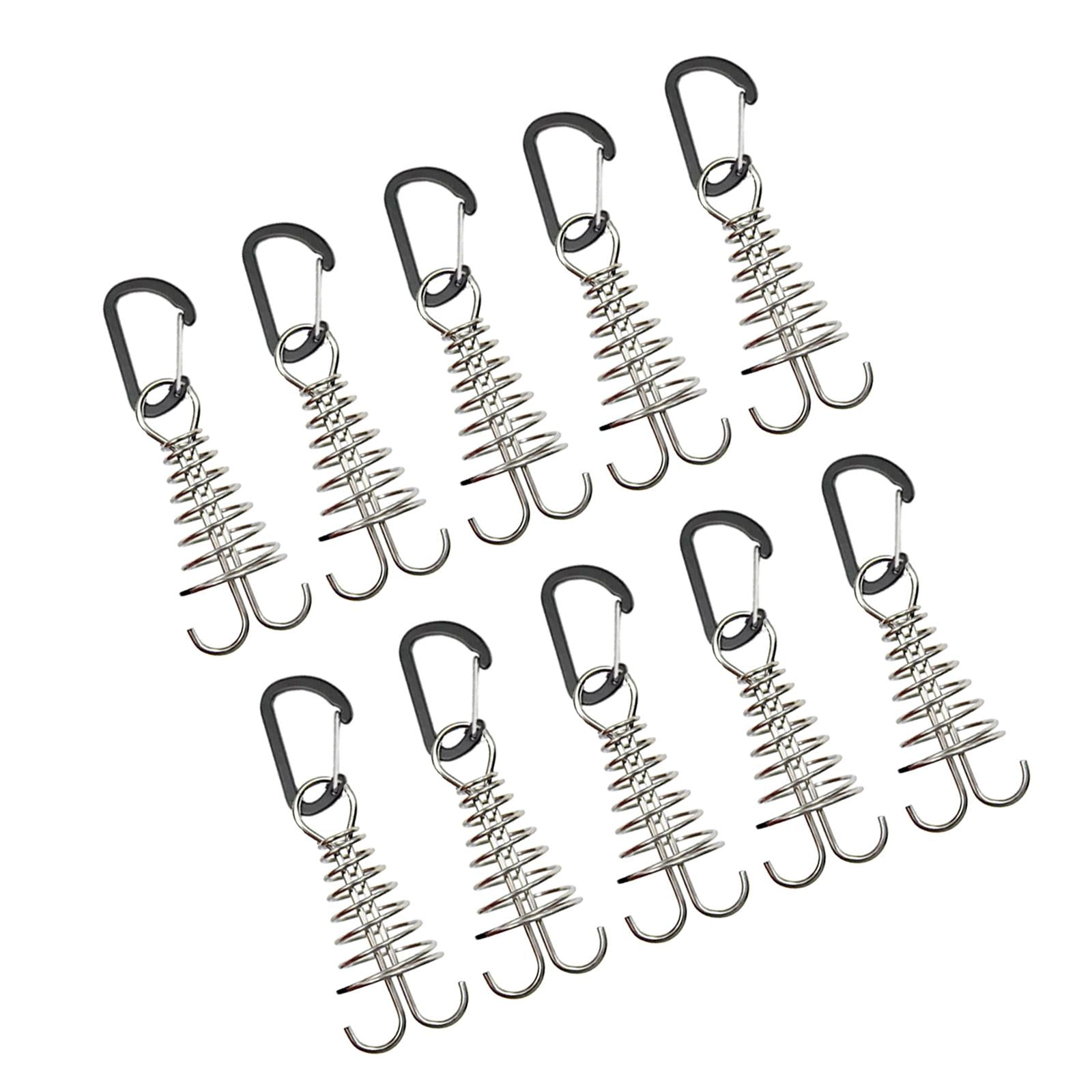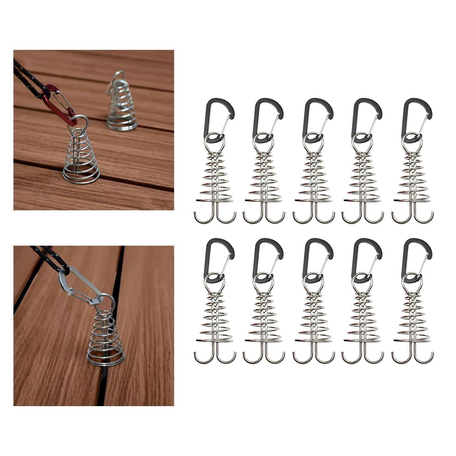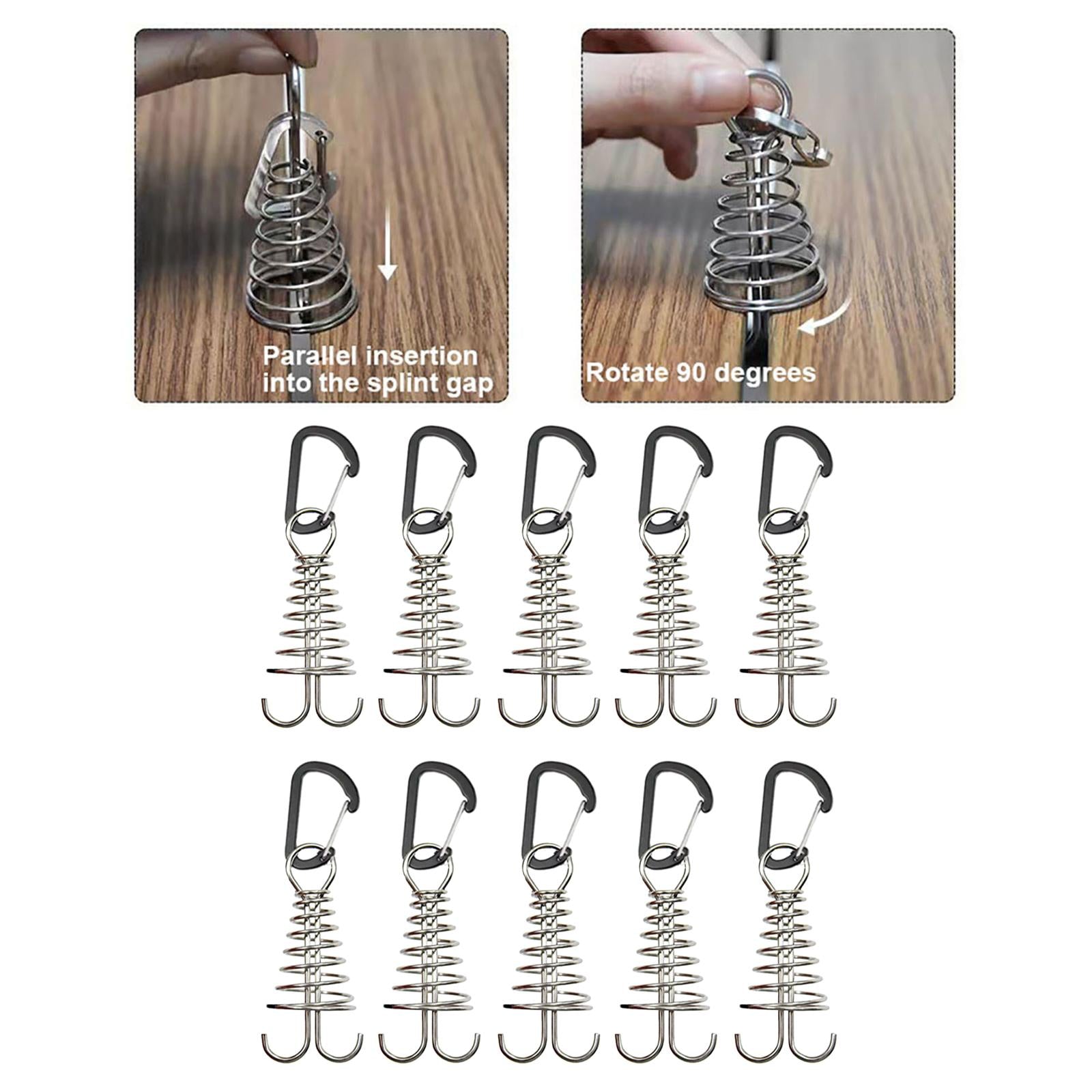 Adjustable Spring: Deck nails are designed with an octopus shape to improve stability and prevent the ground nails from falling or rotating due to the falling of the tent. The retractable spring design is suitable for use on boards of different thicknesses.