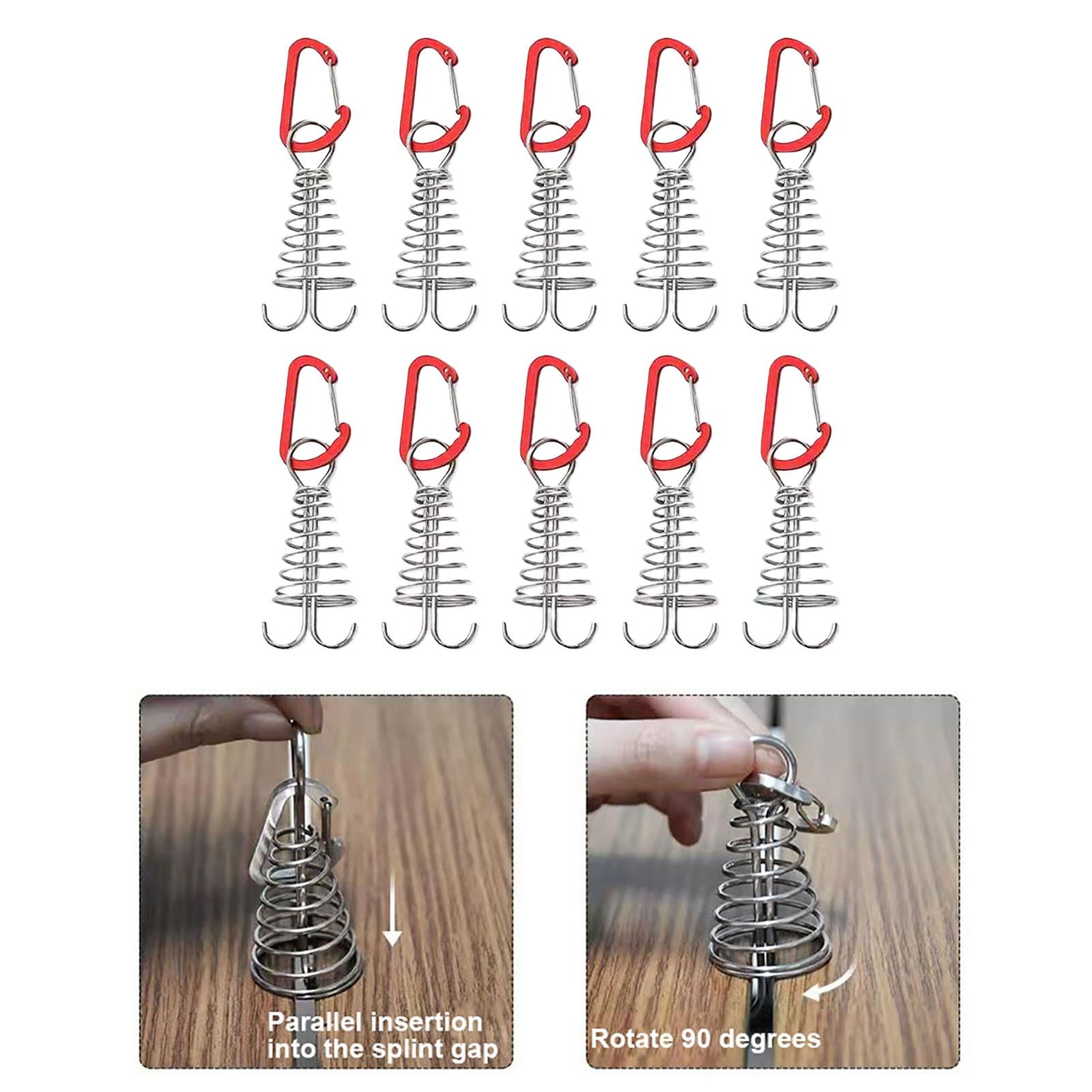 10Pcs Tent Stakes Deck Anchor Peg Spring Buckle Tent Accessories for Outdoor Red