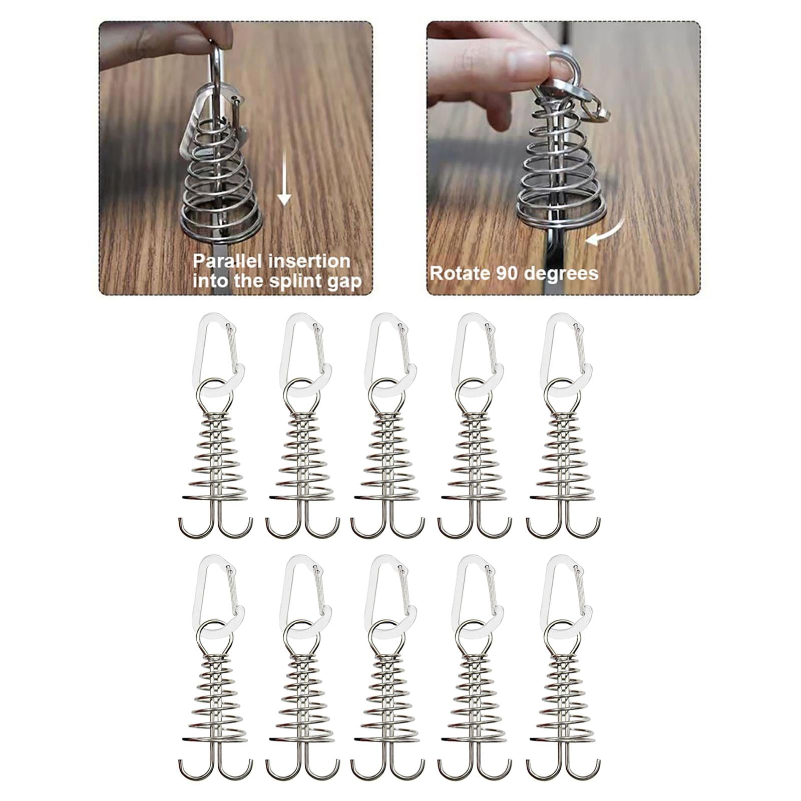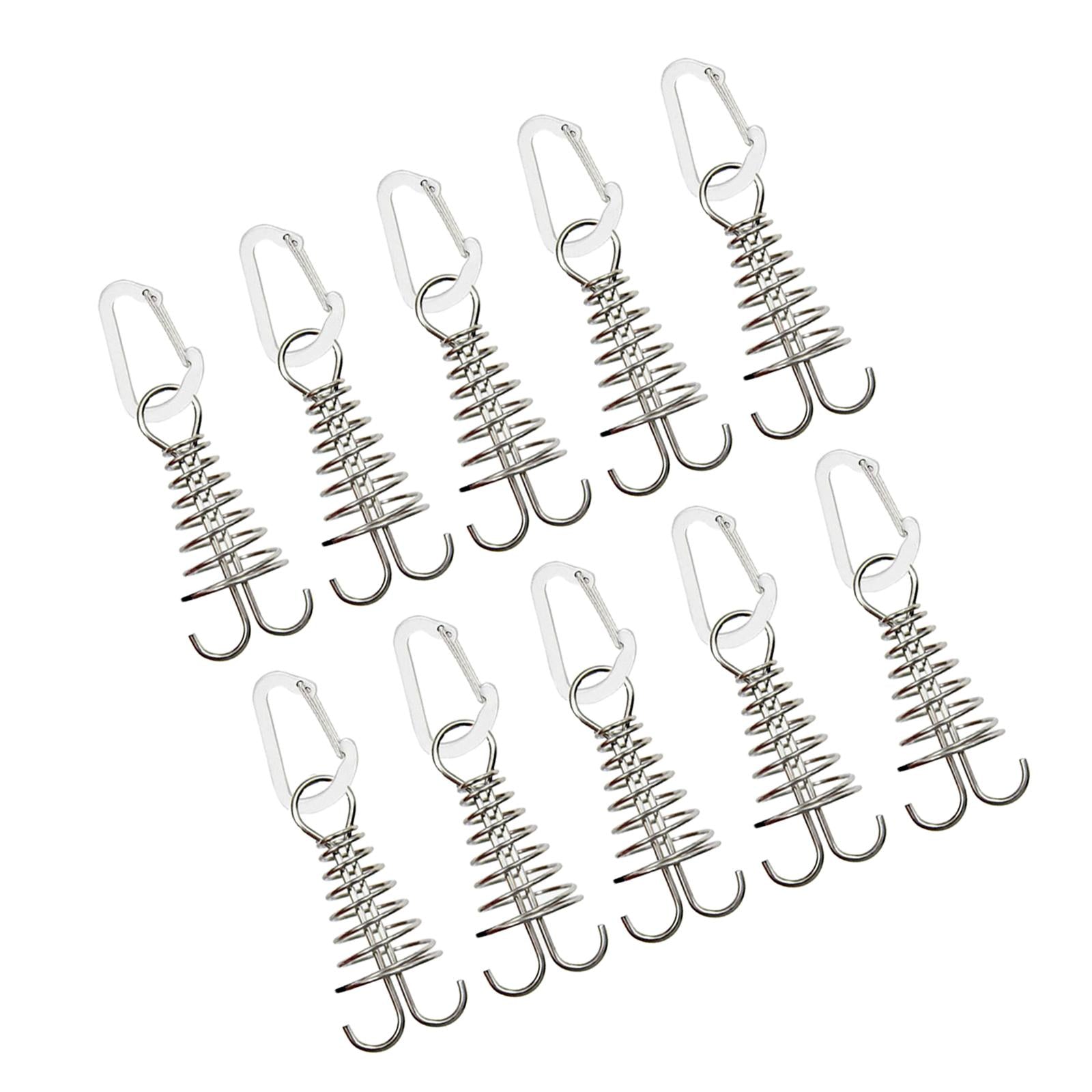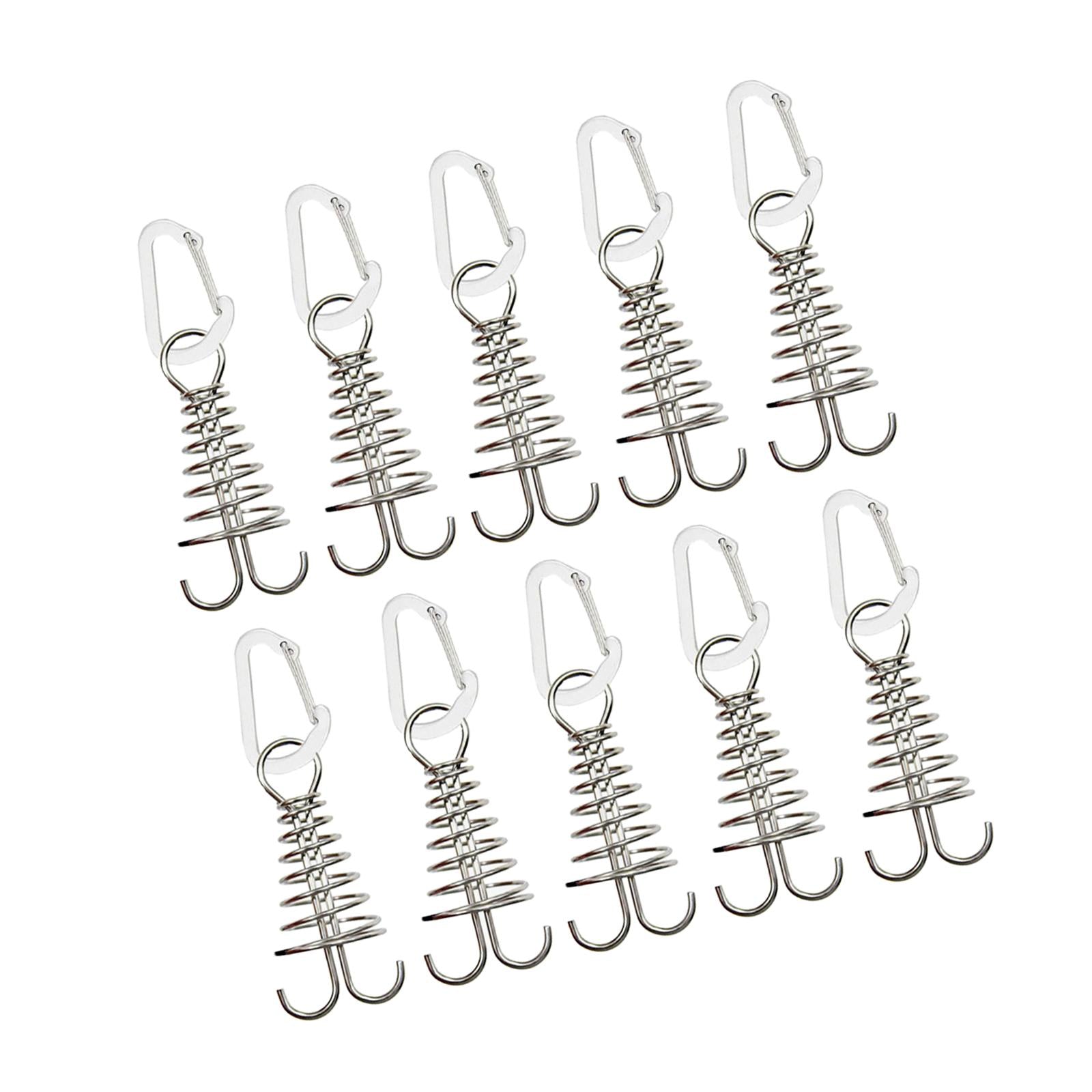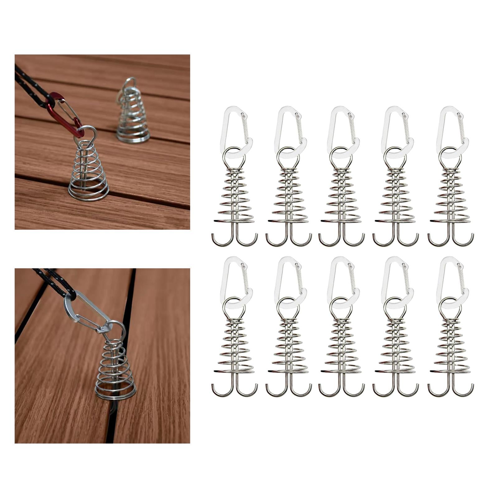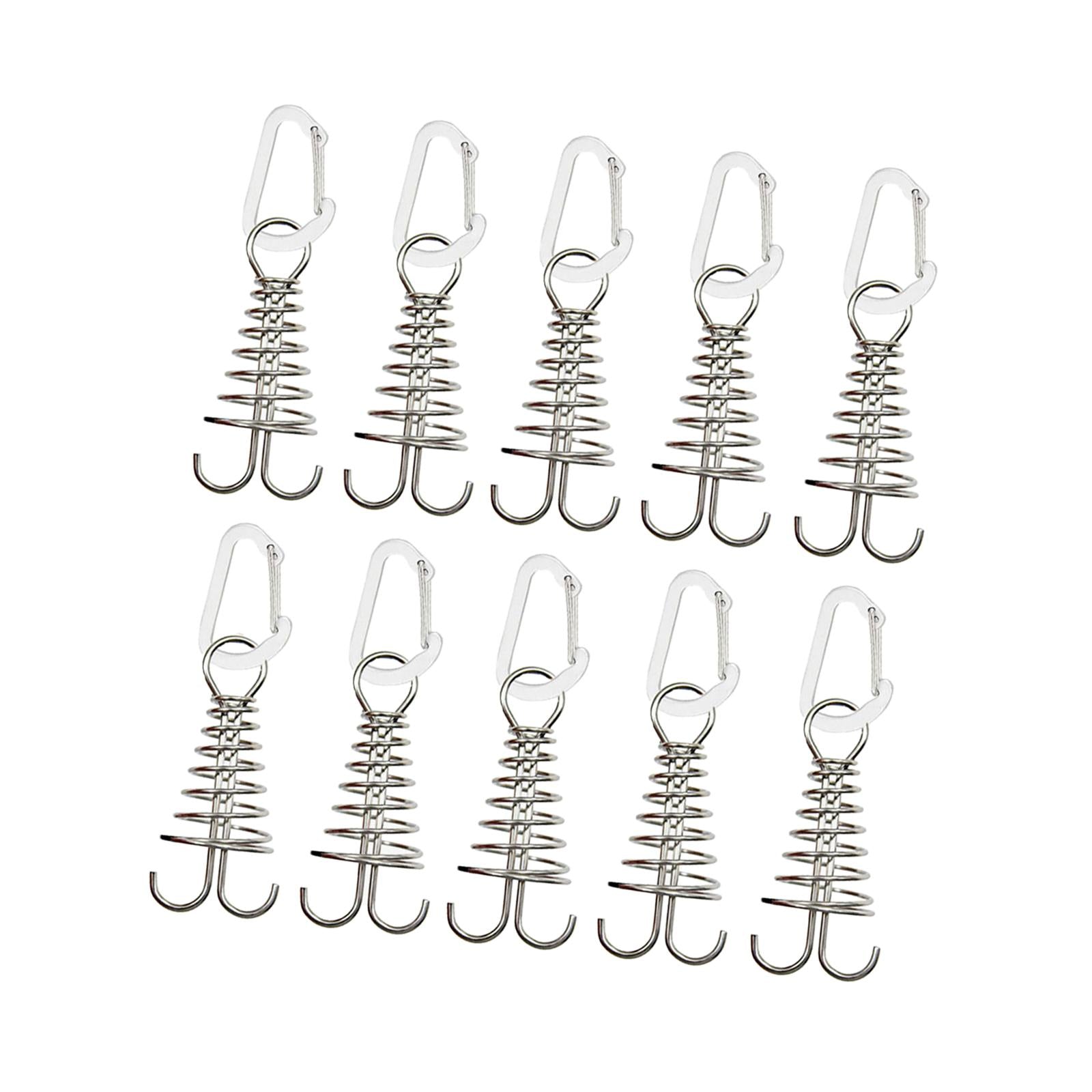 10Pcs Tent Stakes Deck Anchor Peg Spring Buckle Tent Accessories for Outdoor Silver