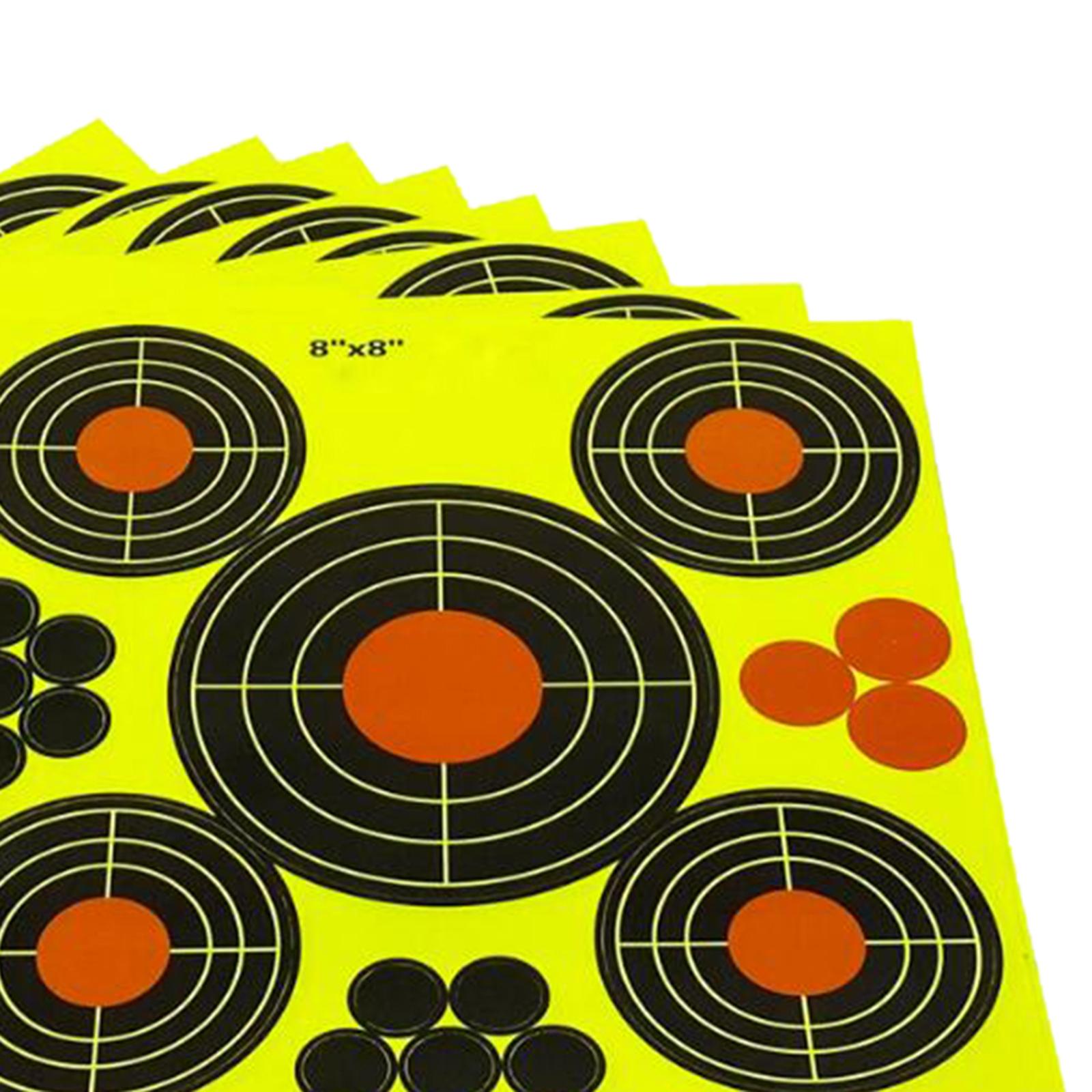 High Quality Paper: 10 Pieces Shooting Reactive Targets can produce a colored ring around your hits which will help you to see your hits instantly.