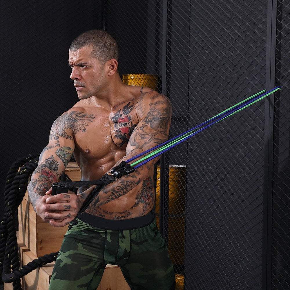 - Complete Kit: 11pcs fitness bands set consists of 5 tube Bands, 2 cushioned handles, 1 door anchor, 2 ankle straps, 1 D-buckle strap. With this complete workout kit, you’ll never miss any chance to challenge various training difficulties for strength building and muscle toning