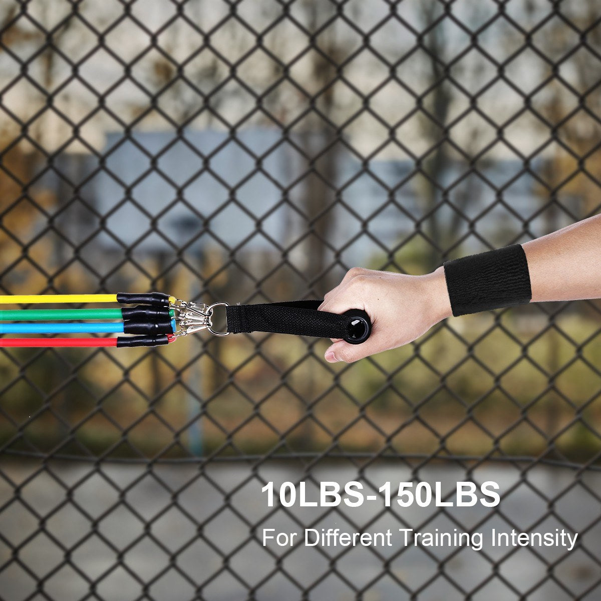 - Complete Kit: 11pcs fitness bands set consists of 5 tube bands, 2 cushioned handles, 1 door anchor, 2 ankle straps, and 1 carry bag. With this complete workout kit, you’ll never miss any chance to challenge various training difficulties for strength building and muscle toning