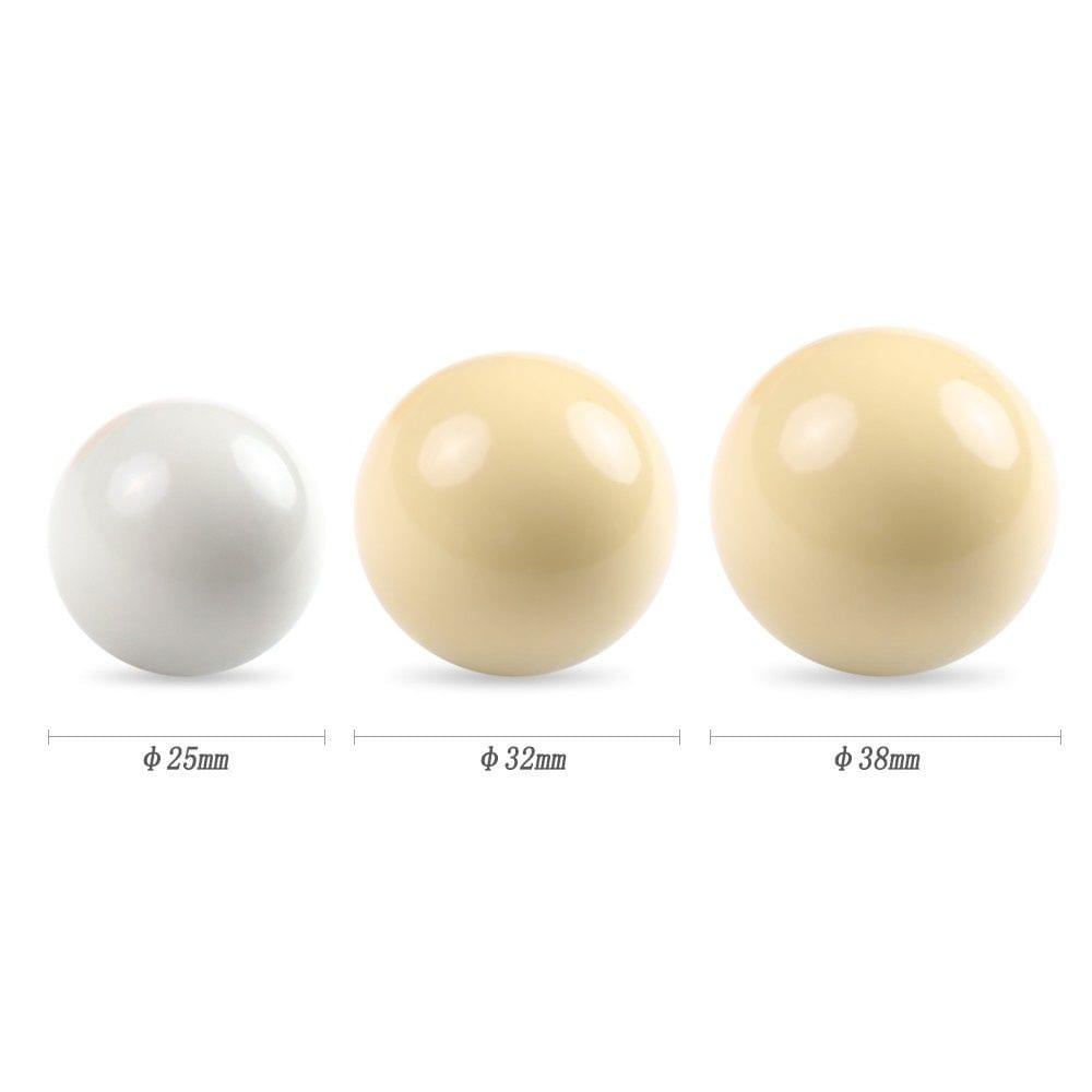 Set include: 7 striped balls, 7 solid colored balls, 1 black eight ball and 1 white cue ball.