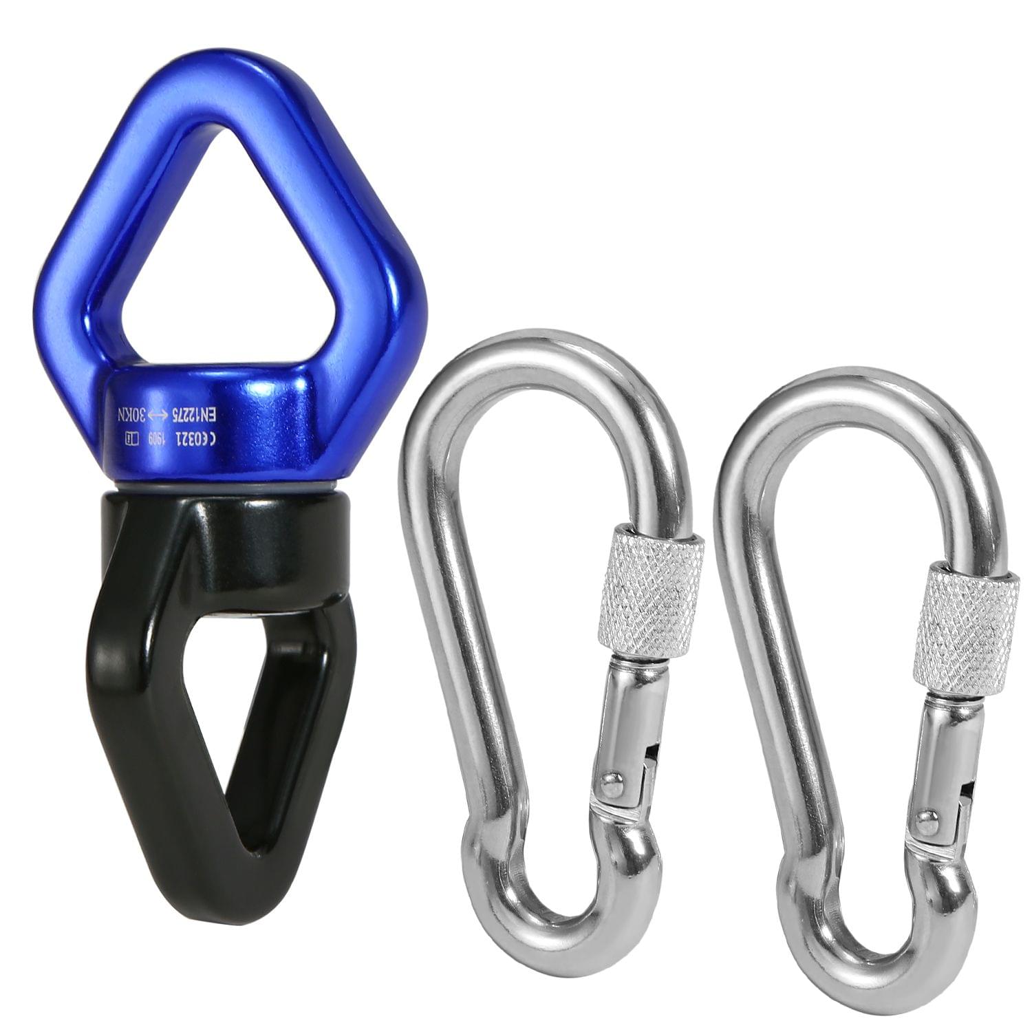 Perfect for all swing set products indoors or outdoors.Features:Made of high quality aviation materials sturdy high intensity lightweight and convenient to carry.360 rotation ring keeps barrier-free rotation effectively ensures security and flexibility.Easy Installation: Active opening is convenient to button up with a high safety factor.Supports a Variety of Exercise: You can use it for hammock swing Yoga rope ring and so on.Specifications:Material: Aluminum-Magnesium Alloy + Stainless SteelColor: Black BlueItem Size8-Shaped Descender: 11*5.5cm/4.3*2.2inSnap Hook: 8*3.5cm/3.15*1.4inItem Weight: 269g/9.49ozPackage Size: 17*12cm/6.69*4.72inPackage Weight: 276g/9.74ozPackage List:1 * 8-shaped Descender2 * Snap Hooks