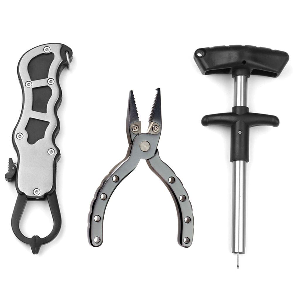 Features:Made of high quality aluminum alloy material strong and sturdy.Small size lightweight and portable space saving easy to carry and storage.With a mounting hole on the handle you can install your anti-lost lanyard (not included).Fishing Catcher:Fishing catcher clamp the fish mouth control the fish will not let the fish run away.Fishing Pliers:Powerful cutter for fish line ergonomic handle design for comfortable holding spring loaded structure.Easy to use you can use it open circle ring remove hooks.Fishing Hook Remover:Rounded edge design significantly reduce damage to the fish or fishing line.Squeeze puller handle makes fish hook removal in an easy one hand operation.Anti-slip ergonomic plastic handle fits your hand perfectly and easy to use.Specifications:Material: Aluminum AlloyFishing CatcherLength: 16.5cm/6.4inWeight: 100g/3.5ozFishing PliersLength: 11.5cm/4.5inWeight: 41g/1.4ozHook RemoverLength: 17cm/6.7inWeight: 55g/1.9ozPackage Size: 26*19cm/10.2*7.5inPackage Weight: 250g/8.8ozPackage List:1 * Fishing Lip Gripper1 * Fishing Pliers1 * Fishing Hook Remover