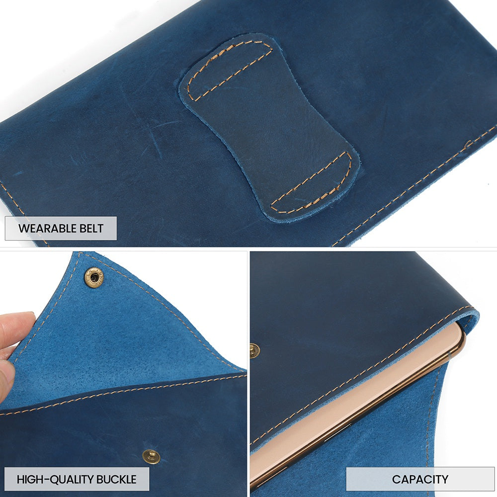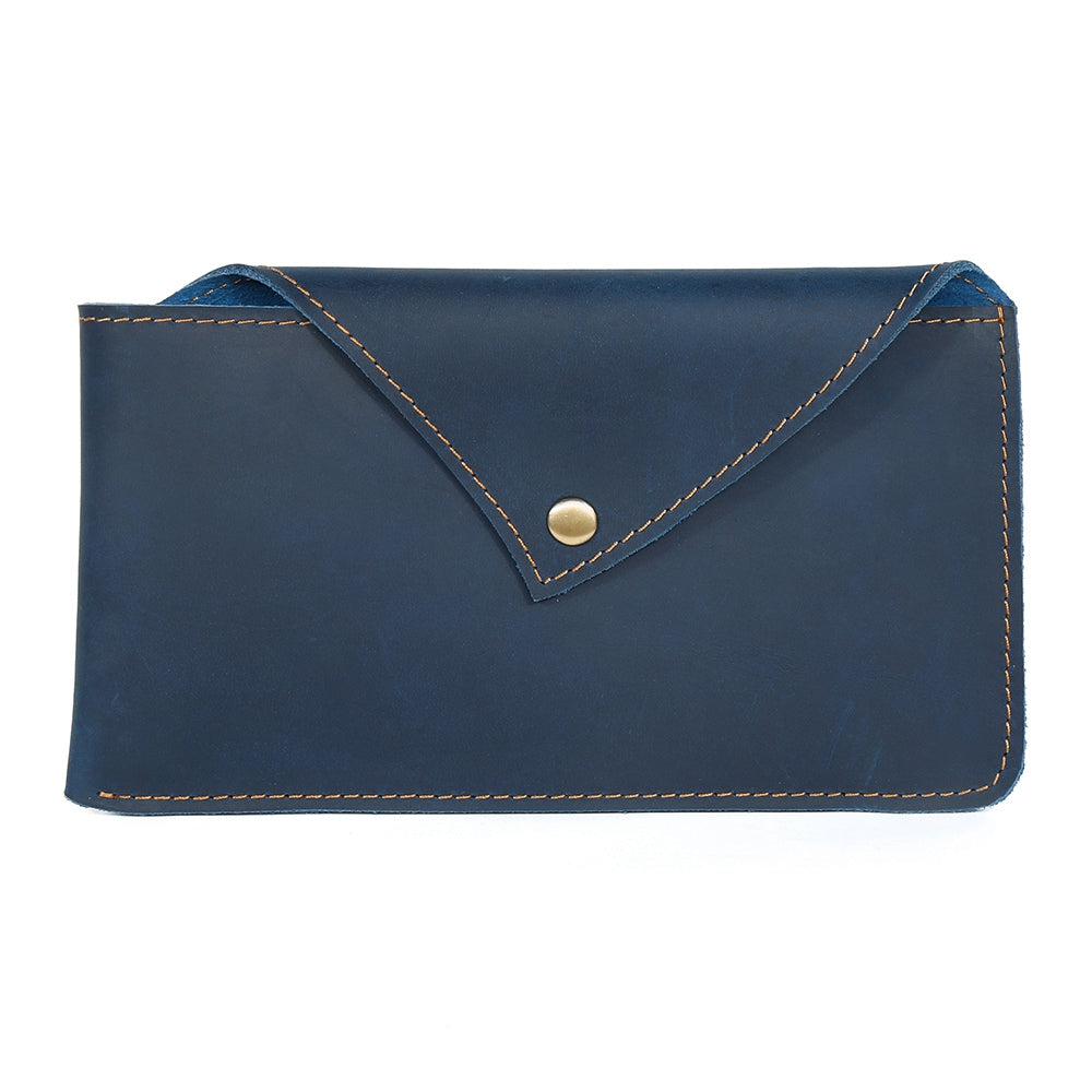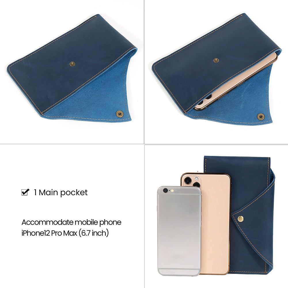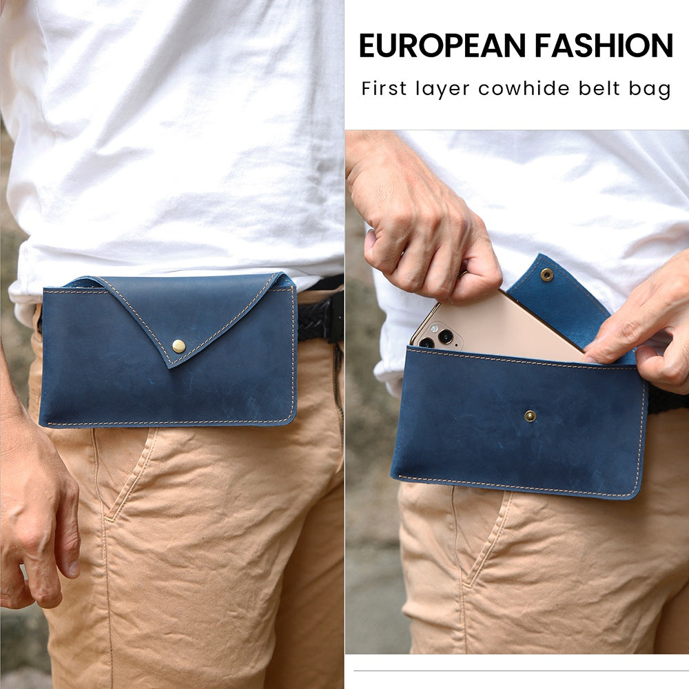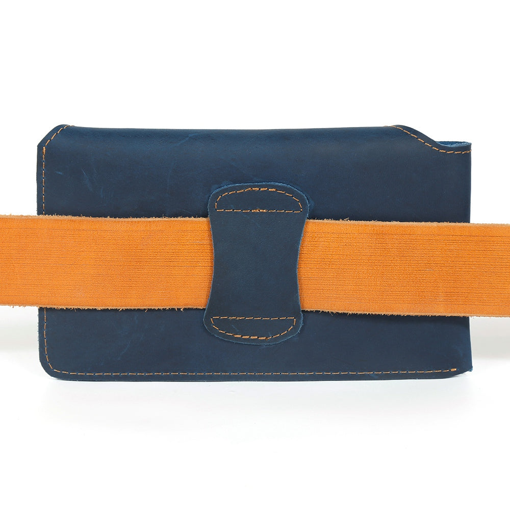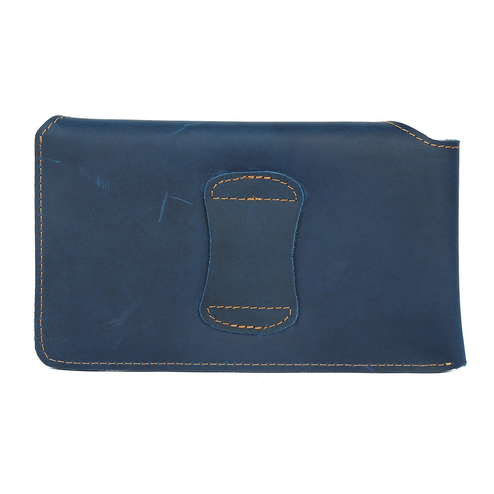 6546 Top Layer Cowhide Outdoor Tactical Sports Phone Waist Pouch Belt Hanging Bag - Blue
