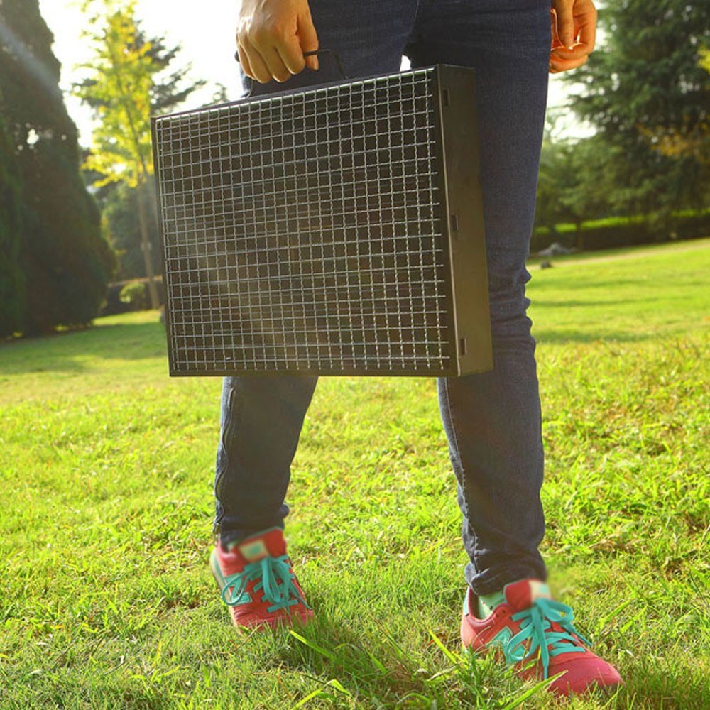 Portable charcoal grill, reliable quality, strong and resistant to high temperature, perfect for cooking, camping, picnics, parties, gatherings, etc. Foldable design, easy to store, does not take up space, convenient to carry.