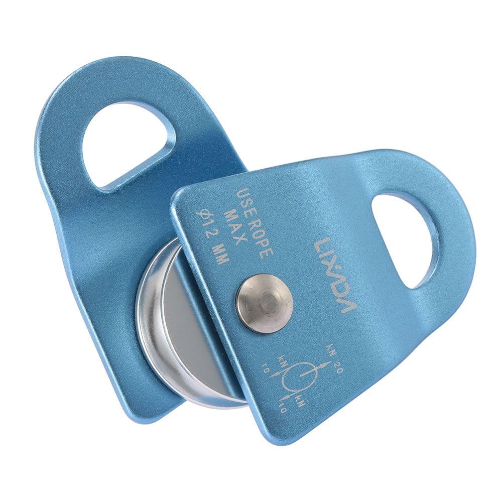 Lixada aluminum pulley with single wheel mobile side plates and high efficiency ball bearing.Features:Aluminum pulley with single wheel mobile side plates and high efficiency ball bearing.Equipped with two attachment points for use in complex lifting systems.For ropes up to 12mm diameter.Tensile strength 20kN.Specifications:Color: Blue / Green (optional)Material: 7075 Aluminum AlloyBreaking strength: 20kN / 4496lbfRope max diameter: 12mm / 0.47inItem size: 8 * 5.7 * 2.7cm / 3.15 * 2.24 * 1.06in (H * W * T)Item weight: 120g / 4.26ozPackage size: 9 * 6 * 4cm / 3.54 * 2.36 * 1.57inPackage weight: 122g / 4.31ozPackage List:1 * Mobile Single Pulley