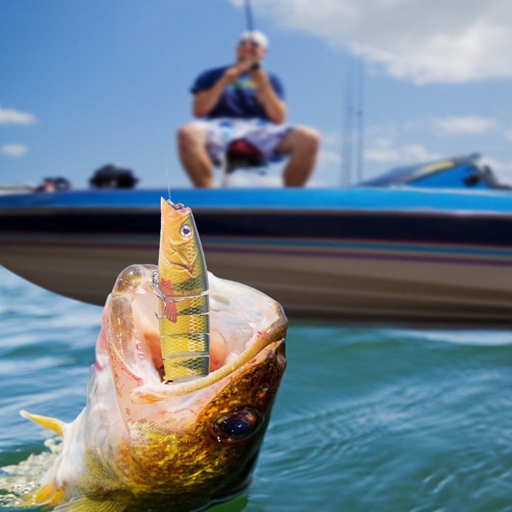 Equipped with vivid 3D eyes and realistic coating, just like a real fish; 8 segmented body with durable carbon steel link joint make it easy to attract and cheat the target fishes to actively hunt prey.