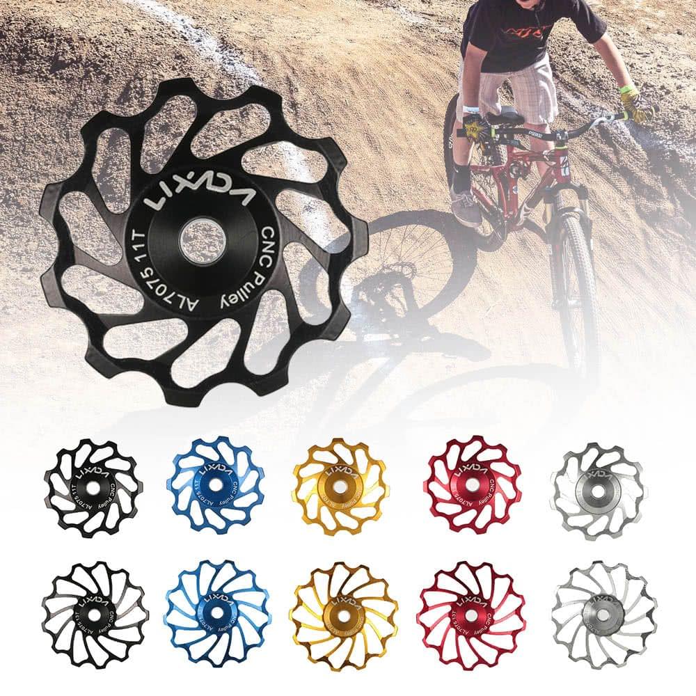 description":"This bike rear derailleur pulley jockey wheel is constructed of CNC 7075 aluminum alloy, lightweight and durable. It is a wonderful accessory for your bicycle. Features? Anodized CNC machined construction. Ceramic bearings. Fits for 4/5/6mm roller screw axis and most of rear derailleur on the market, support 7/8/9/10 speed. Anti Rust/Corrosion Resistant Anodized. Specification: Product: Bicycle Rear Derailleur Pulley Jockey Wheel Brand: Lixada Material: 7075 aluminum alloy Color: Black / Silver / Blue / Red / Golden (Optional) Size: 11T / 13T (Optional) Diameter: 41mm Package Size: 7 * 4 * 1cm / 2.8 * 1.6 * 0.4in Package Weight: 10g / 0.35oz Package List: 1 * 11T Wheel