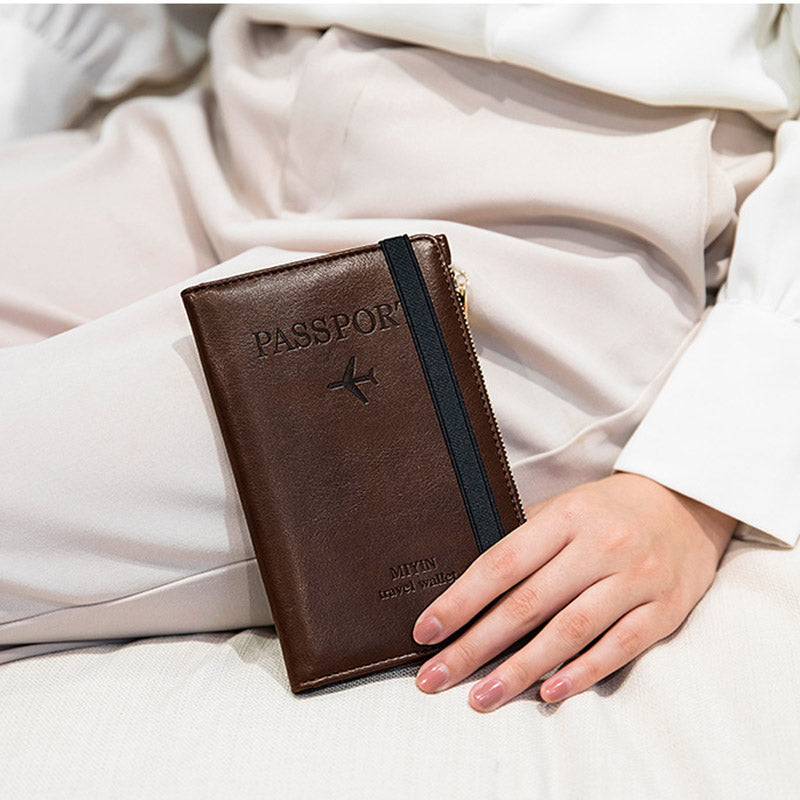 HZ702 Travel RFID Blocking Passport Storage Bag PU Leather Wallet Credit Cards Cash Ticket Holder Bag - Coffee