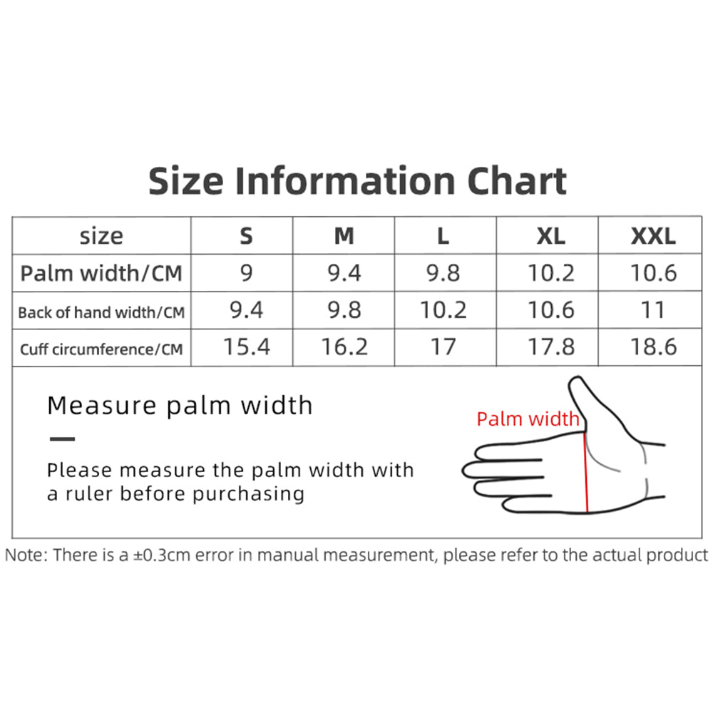 | Size | Palm width(cm) | Back of hand width(cm) | Cuff circumference(cm) |