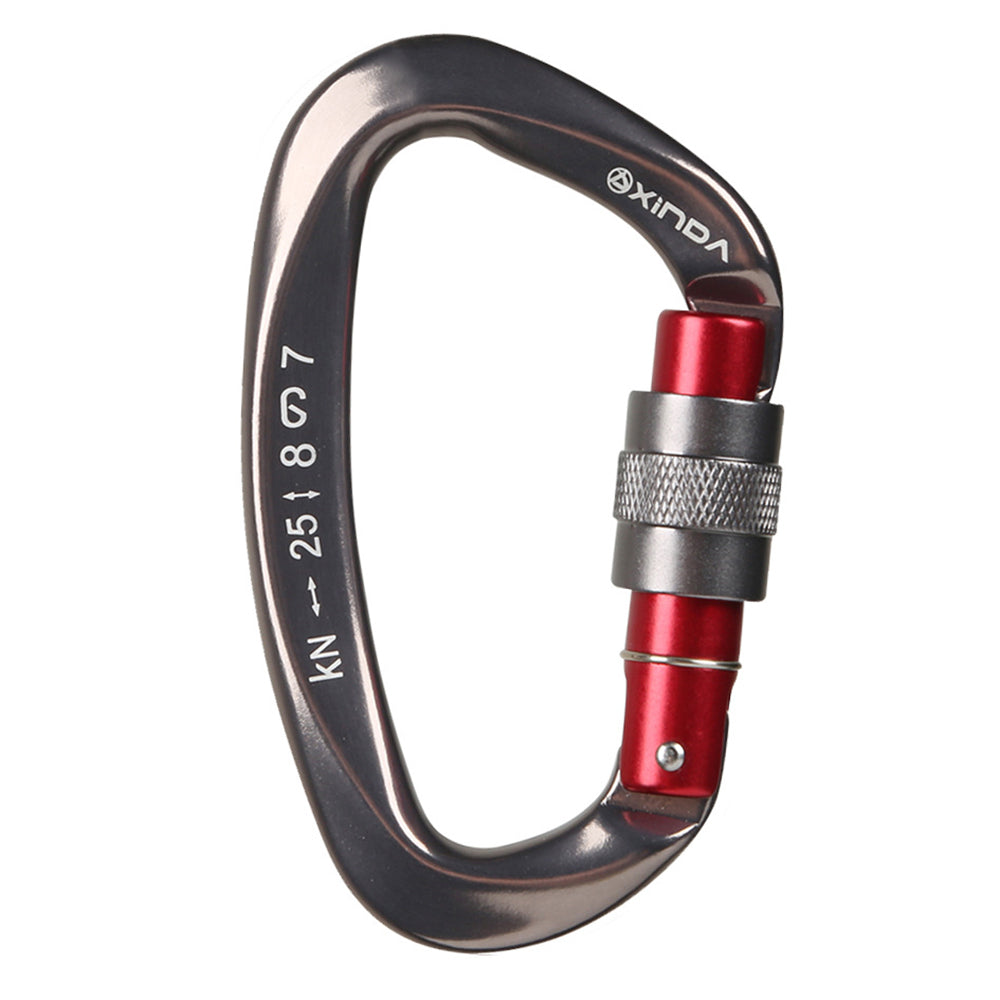 Xinda XD-Q9628 Heavy Duty 25KN Carabiner Clip D-Shape Rock Climbing Hanging Hook Fast Locking for Camping Hiking Outdoor Gym Hammock Dog Leash - Grey