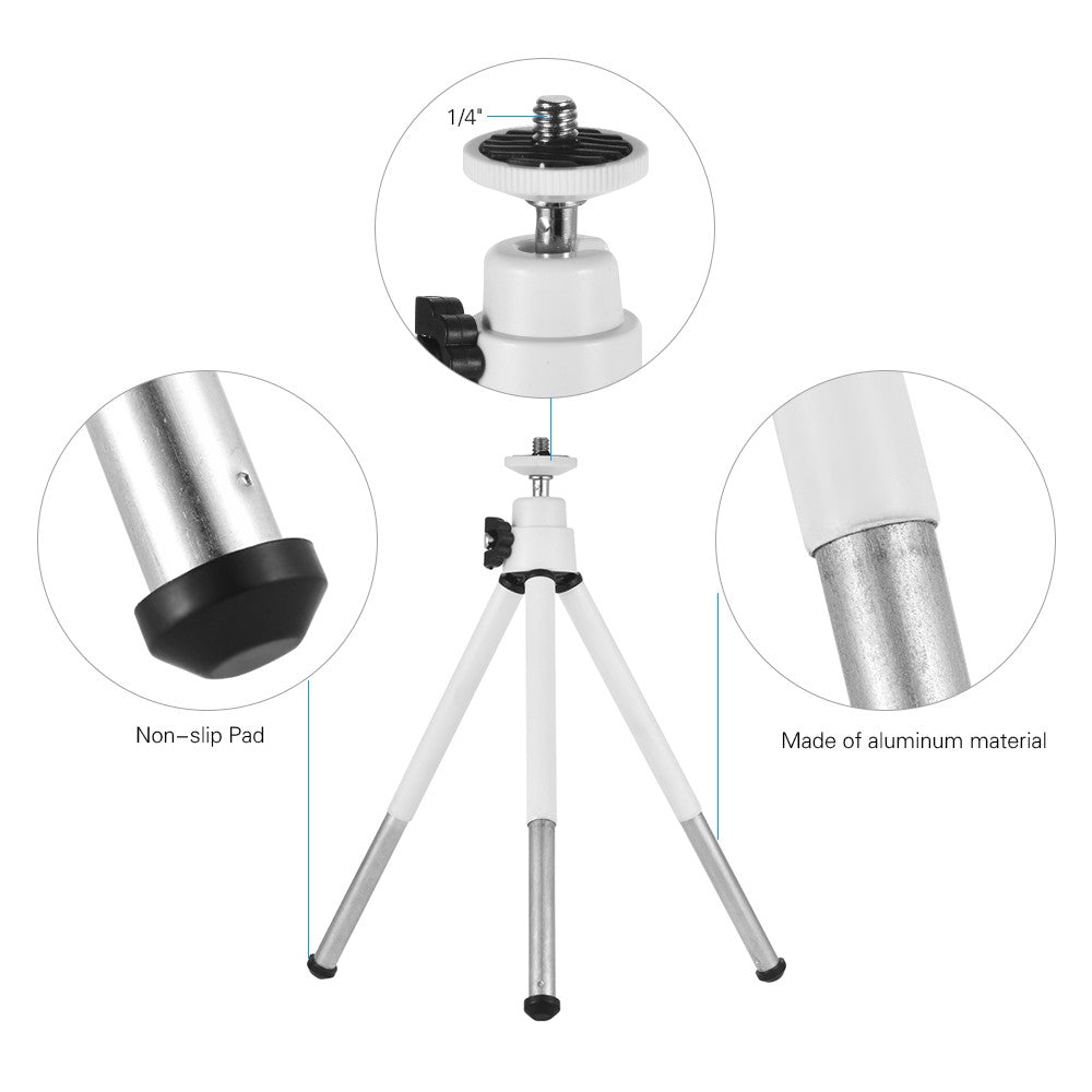 2-Section Extendable Desktop Mini Tripod Stand Holder - White