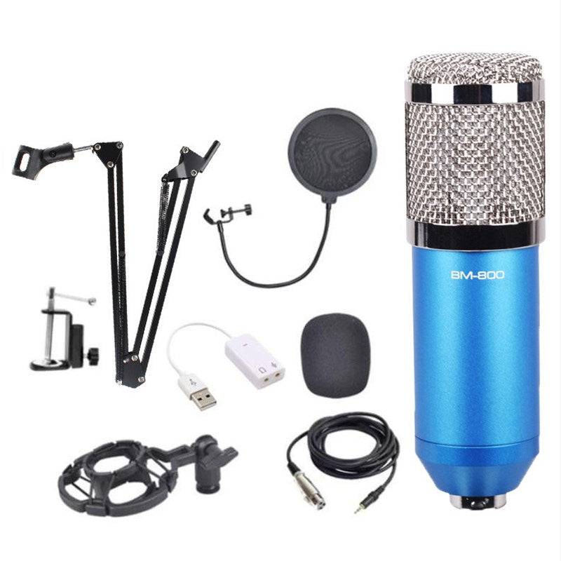 Condenser Microphone Audio Professional Kit Studio Recording Set with Stand - Blue