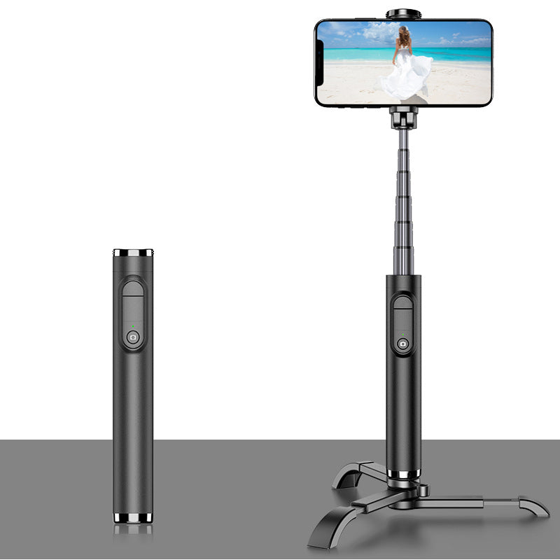 M11 Folding Selfie Stick Aluminum Alloy Tripod Handheld Extendable Monopod with Bluetooth Remote for Vlogging Live Broadcasting - Black