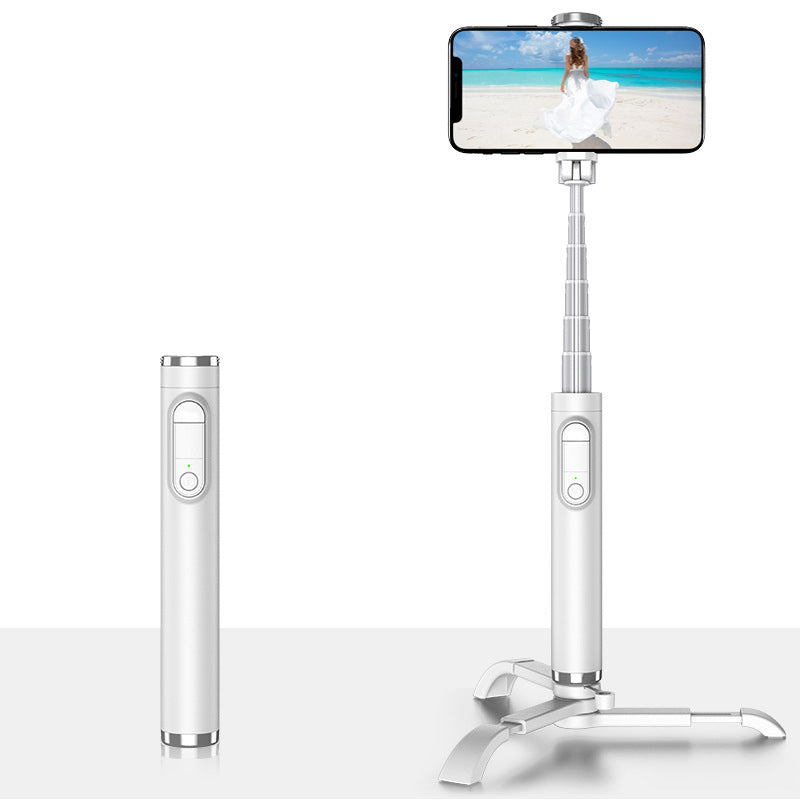 M11 Folding Selfie Stick Aluminum Alloy Tripod Handheld Extendable Monopod with Bluetooth Remote for Vlogging Live Broadcasting - White
