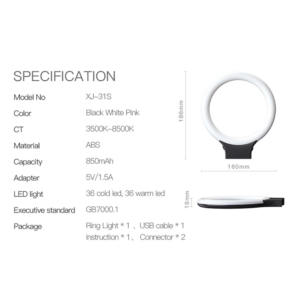 DC 5V 16.7W Fill Light Selfie Camera Lamp USB Powered Adjustable Brightness Dimmable - Black/with Bracket