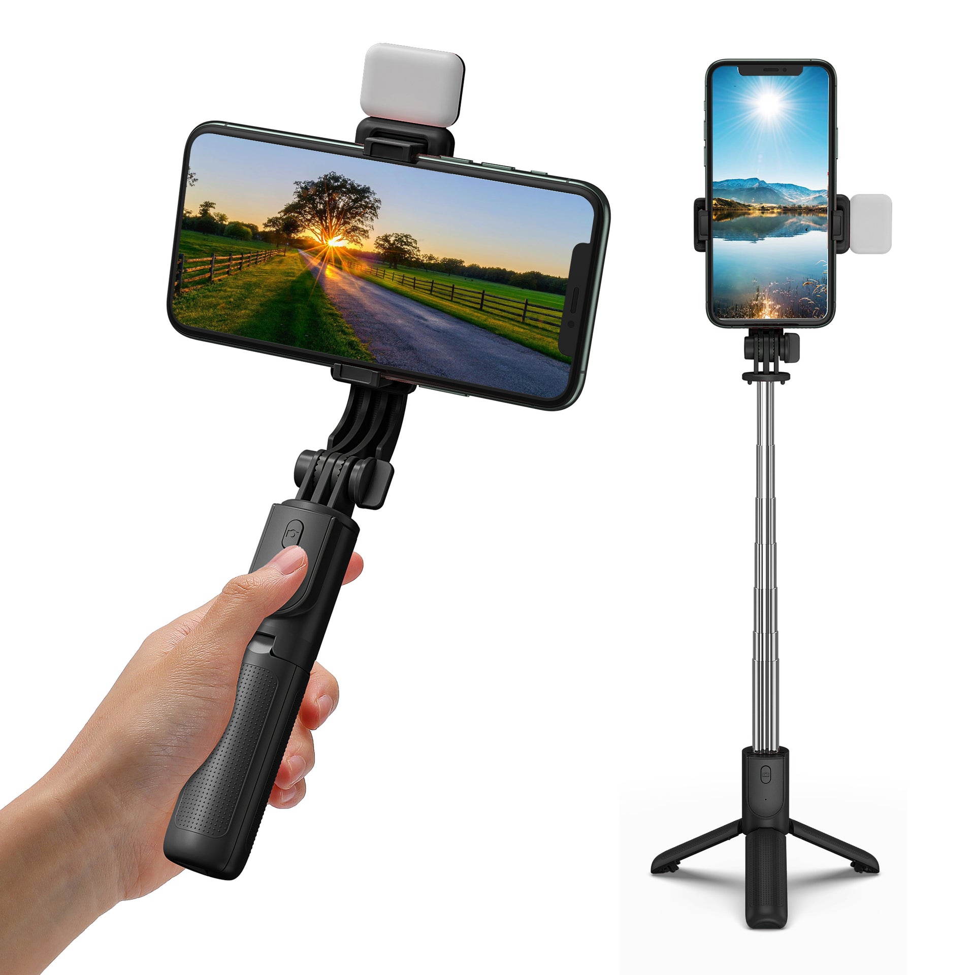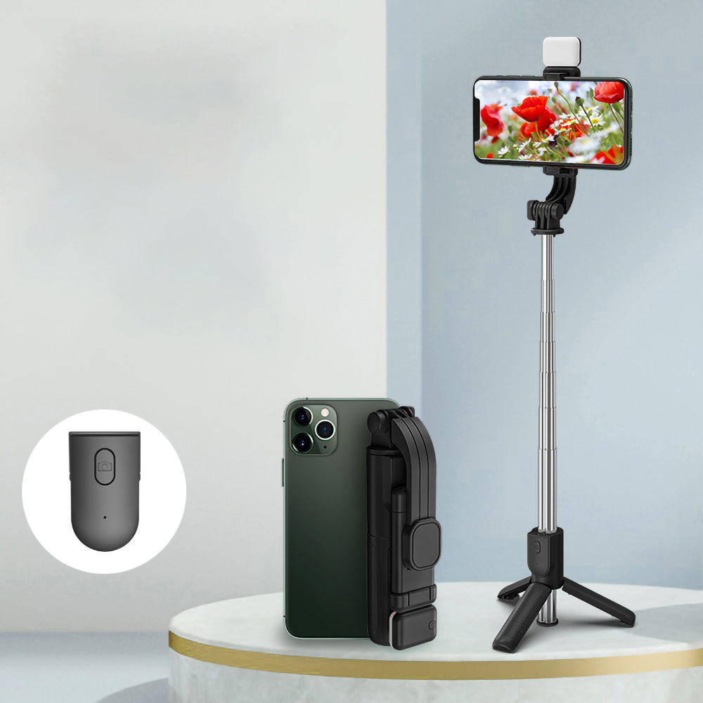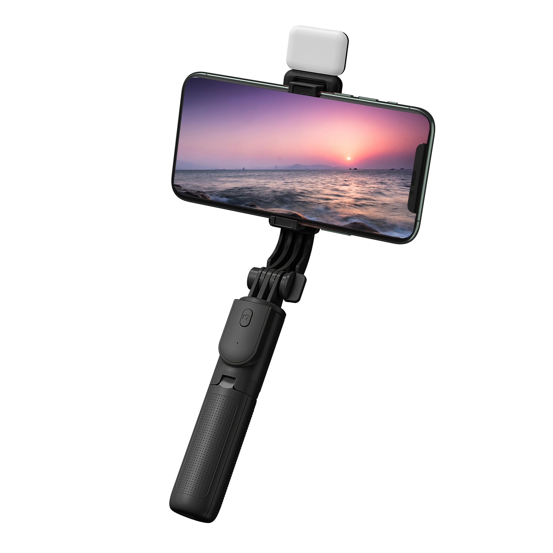 H8s Wireless Bluetooth Selfie Stick Foldable Mini Tripod Telescopic Monopod with Fill Light Remote Control for Smartphone - Black