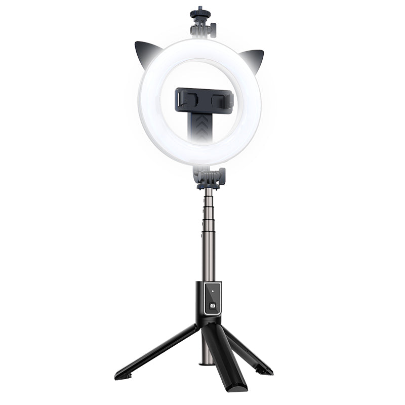 P40D 6inch Ring Light with Bluetooth Remote Control Retractable Selfie Stick Tripod - Cat Ears