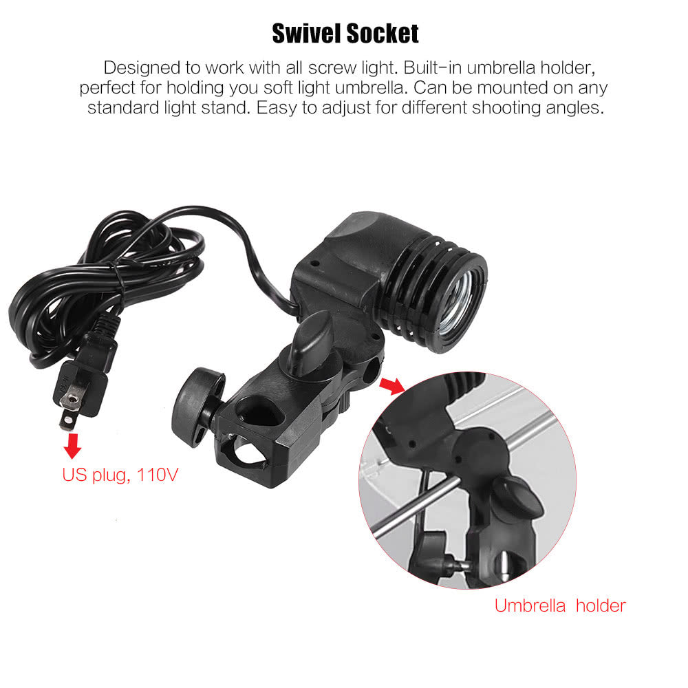 Photo Studio Lighting Kit Set Light Stand White Soft Light Umbrella 45W Light Bulb Swivel Light Socket - US Plug