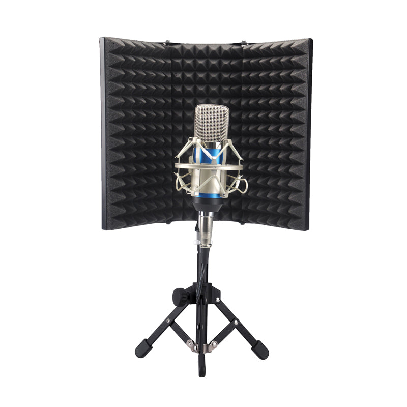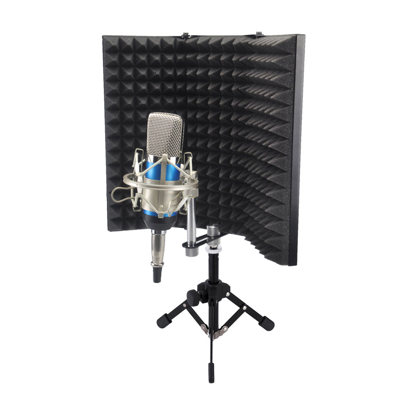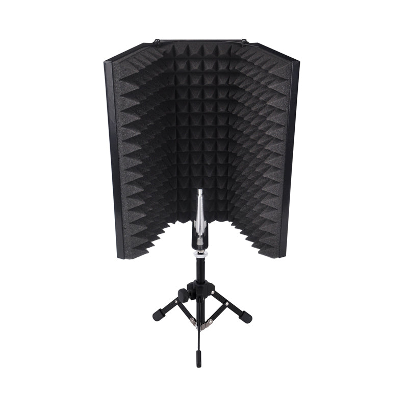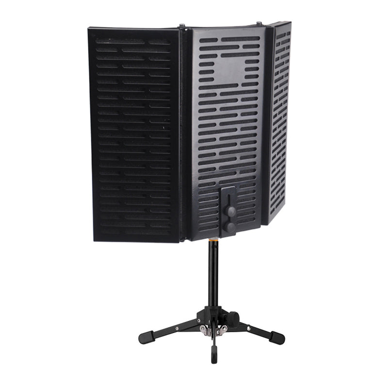This is a portable studio screen made of an outer aluminum panel an inner high density EVA foam. The appearance is decent, portable and concise. Through adjust horizontal andvertical link you can place the microphone in the proper site. Only in this way can you reduce the reflection and noise effectively during recording, reachinga better recording result.