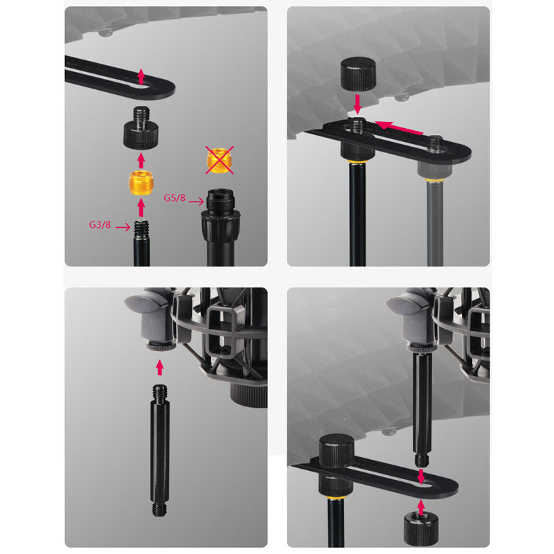 Easy assemble, through adjust horizontal andvertical link you can place the microphone in the proper site