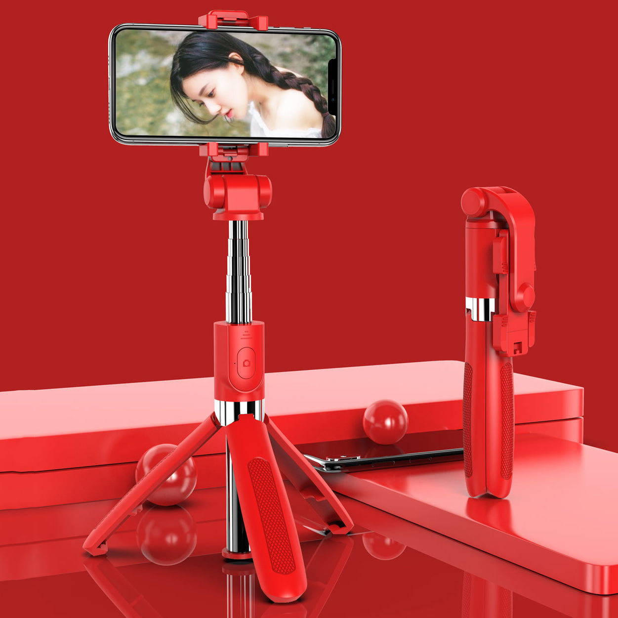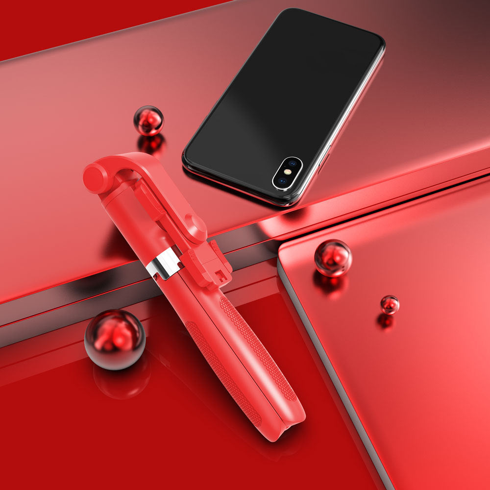 SELFIESHOW L01s Selfie Stick Tripod Extendable Bluetooth Monopod with 360 Degree Rotating Phone Clip and Remote Control - Red