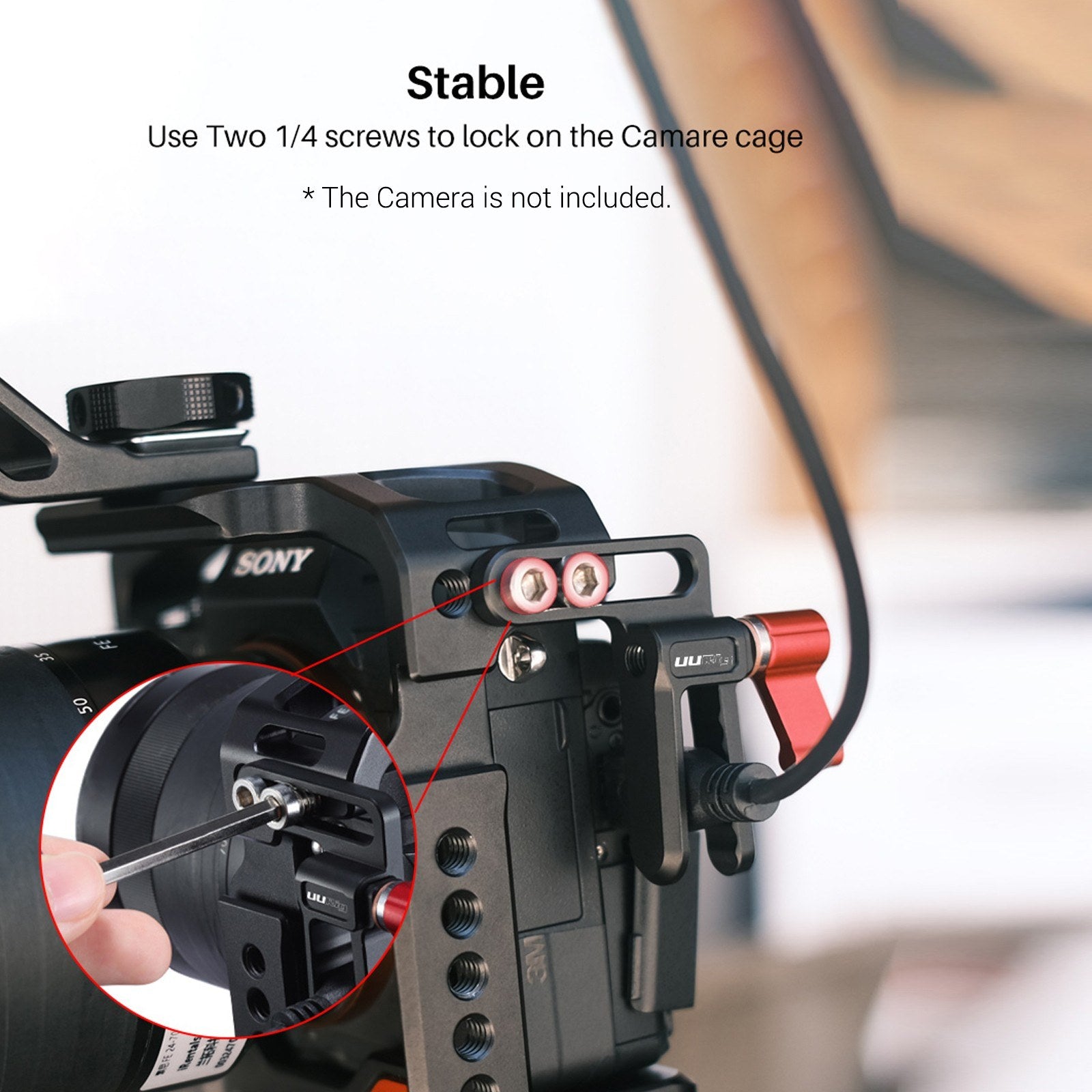 The solid and compact aluminum alloy camera cage cable clamp is designed for solving the fixation issue of line connecting to camera, securing it stable and tight, avoiding wobbling.