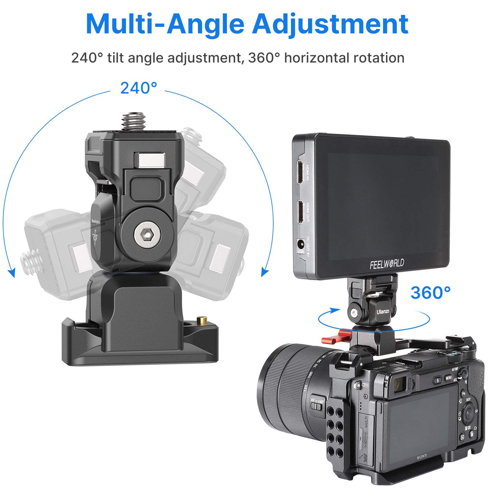 360 degree adjustable ballhead enable to shoot horizontally and vertically