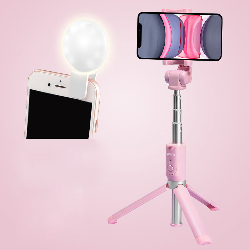 W-10 Bluetooth Multifunctional Selfie Stick Live Streaming Hidden Telescopic Tripod with Fill Light - Pink