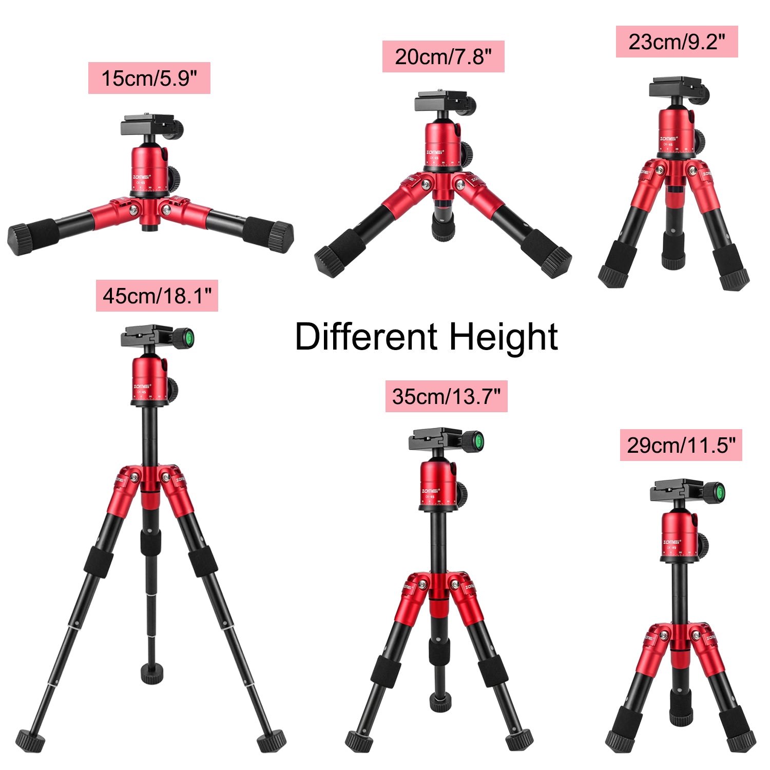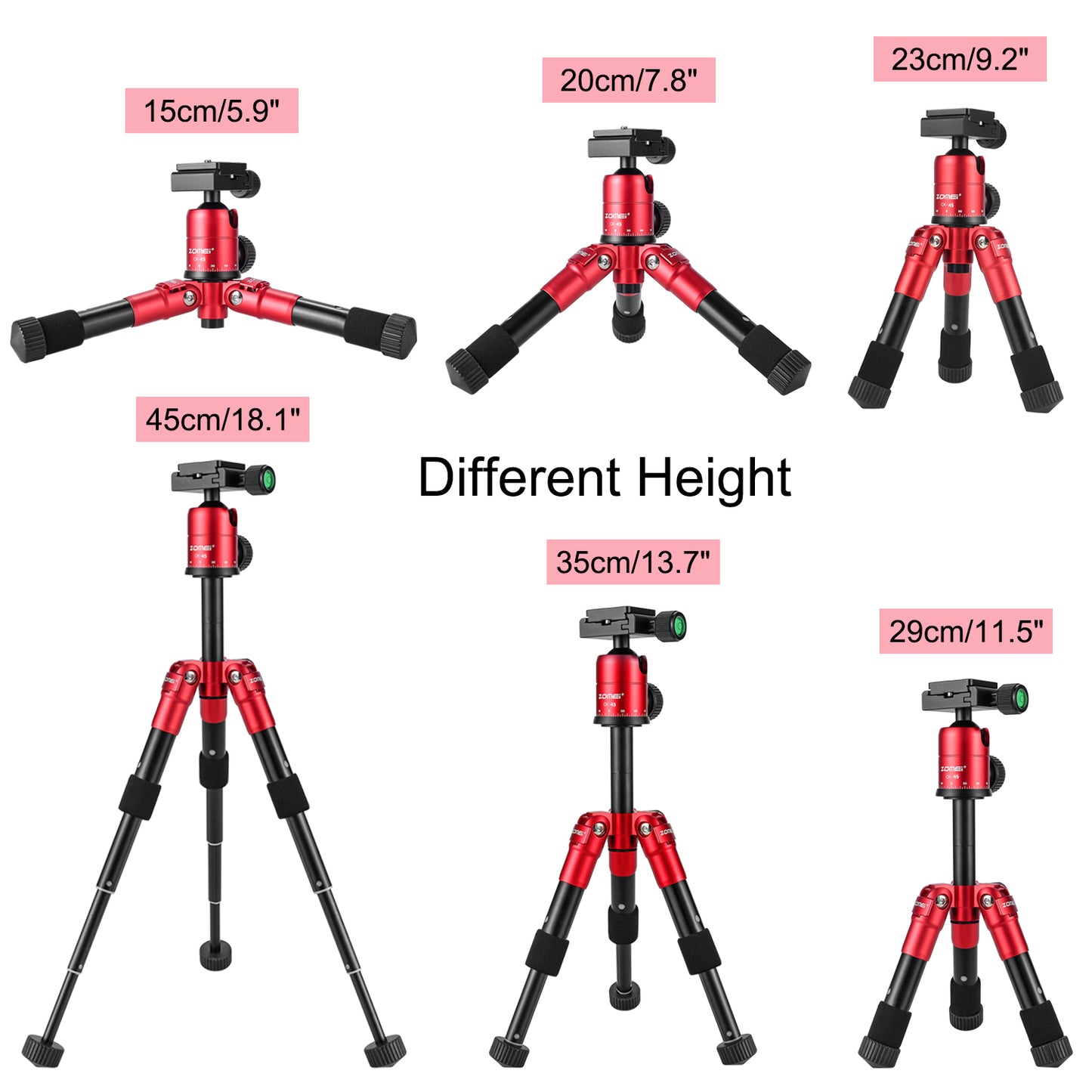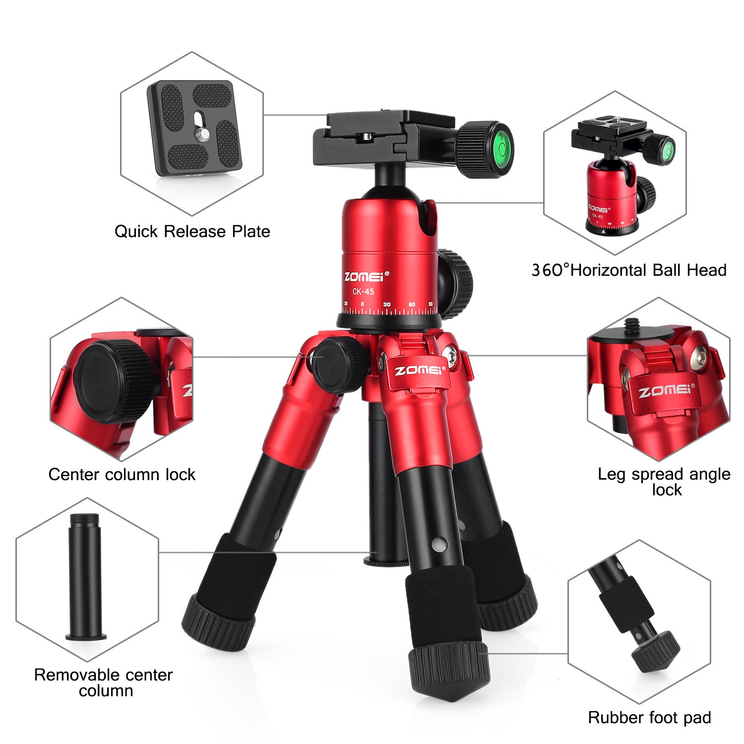 ZOMEI CK45 Camera Live Tripod Aluminum Flexible Mini Tabletop Tripe and Phone Holder for Smartphone DSLR Camera Video - Red