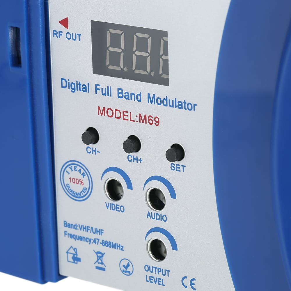This RF Modulator is designed to generate RF andTV signal from A/V sources which you could view the program on your TV directly via channel. It&39;s widely used in schools retail display trade show presentations and more.Features:Humanized design easy to install and operate.High performance circuit design provides accurate picture reproduction.Can convert audio and video to RF via channel.VHF / UHF operating frequency from 47 to 868 MHz.With selectable output level of audio and video.Compatible with all local CATV system.Specifications:Plug Type: US / EU(Optional)Color: Blue / Orange(Optional)Material: ABS*Input:US: AC120V 60HzEU:C230V 50HzMax. Power: 3WFrequency Range: 47-868MHzOutput Impedance: 750HmOutput Level: 80-95dBuVInput Level: 0.77Vp-p for 80%+/-10%modulationSound System: M=4.5MHz?B/G=5.5MHz?I=6.0MHz?D/K=6.5MHzA/V connector: RCA FemaleRF Input: F FemaleRF Output: F FemaleOperating Temperature: -10? ~+60? / 14?~140?Item Size: Approx. 15.5 * 8.6 * 5cm / 6.1 * 3.4 * 2inItem Weight: Approx. 356g / 12.6ozPackage Size: Approx. 16.5 * 10.8 * 5.5cm / 6.5 * 4.3 * 2.2inPackage Weight: Approx. 407g / 14.4ozPackage List:1 * Modulator1 * User Manual(English)