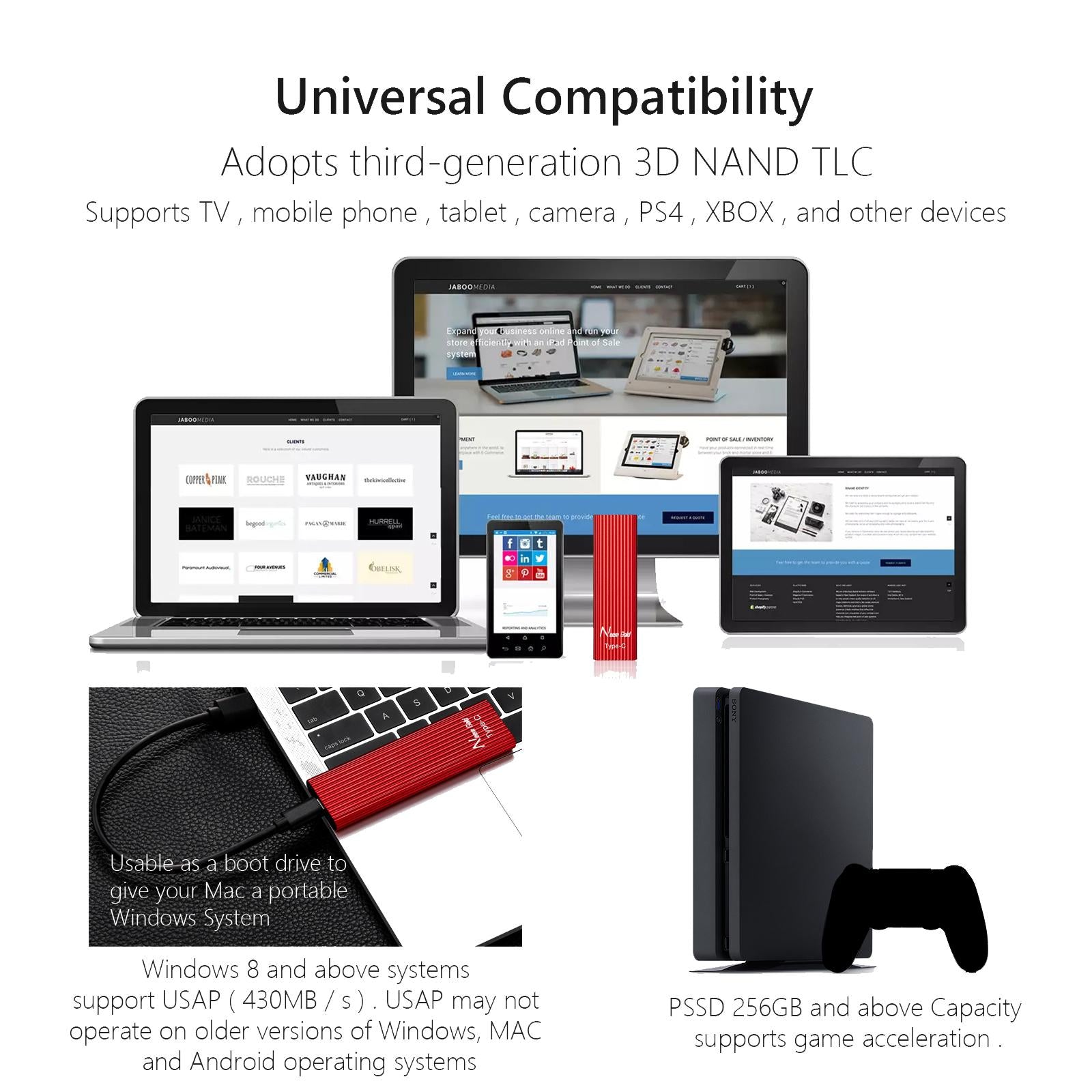 External SSD USB3.1 Solid State Disk for TV  Phone Camera 500GB Red