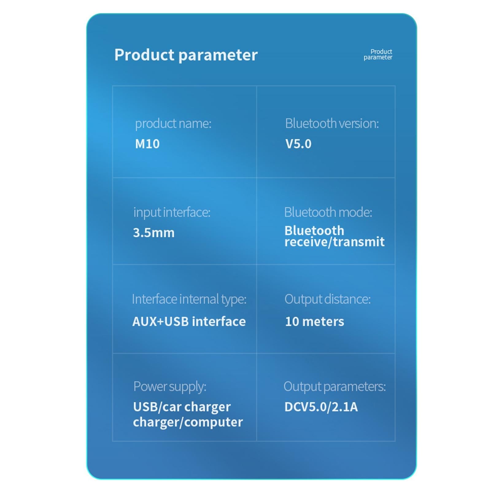 M10 USB Bluetooth 5.0 Transmitter and Receiver Built-in Mic For PC TV Car