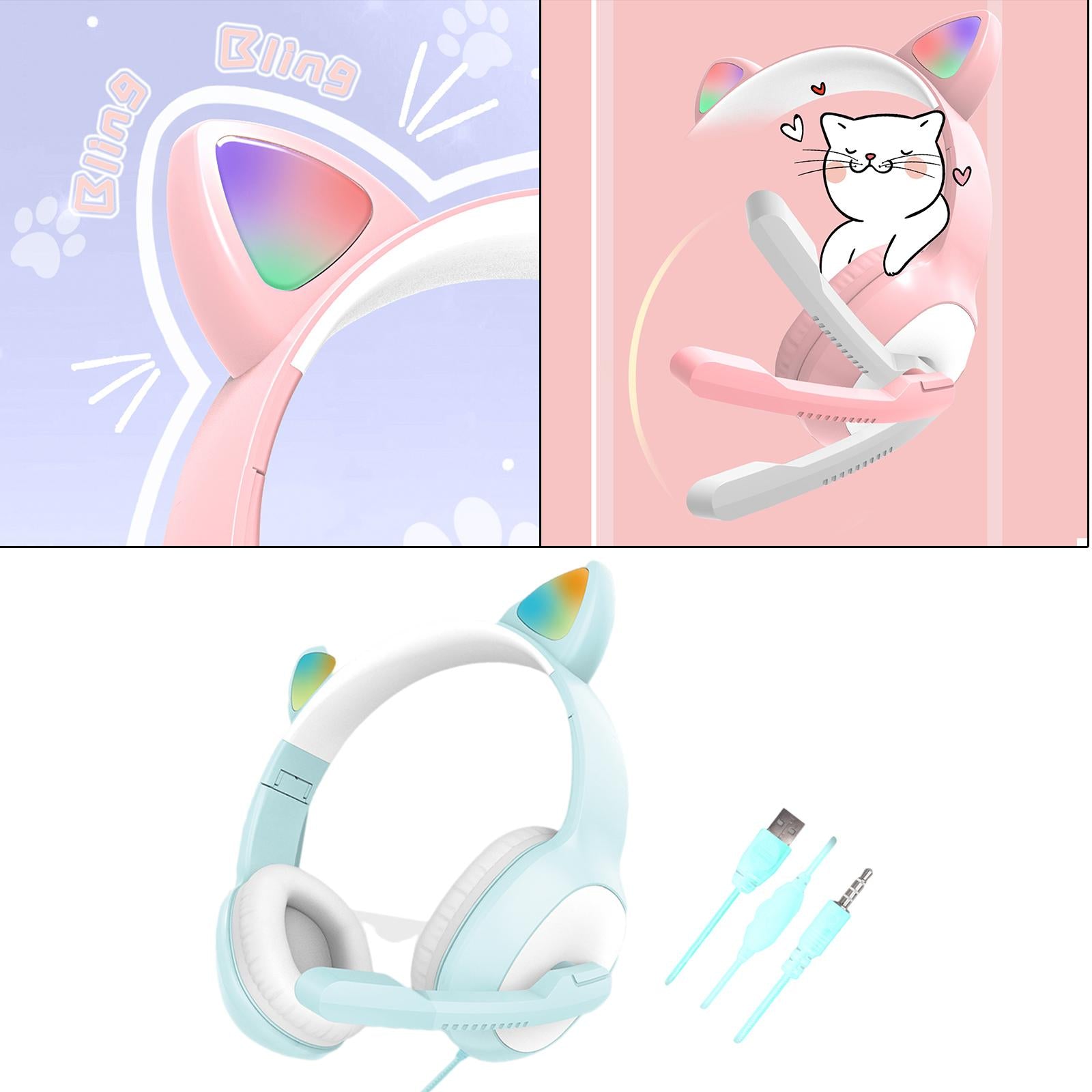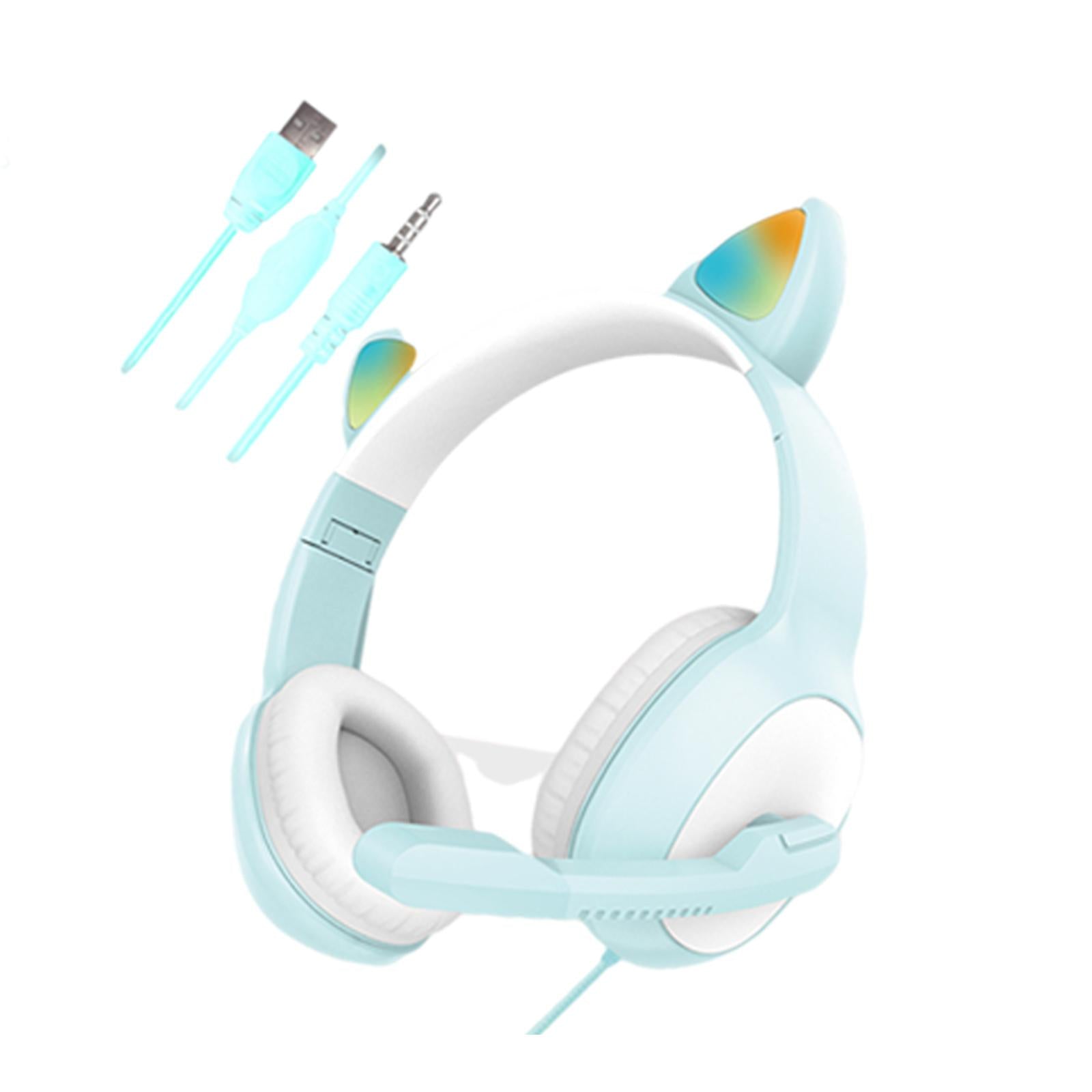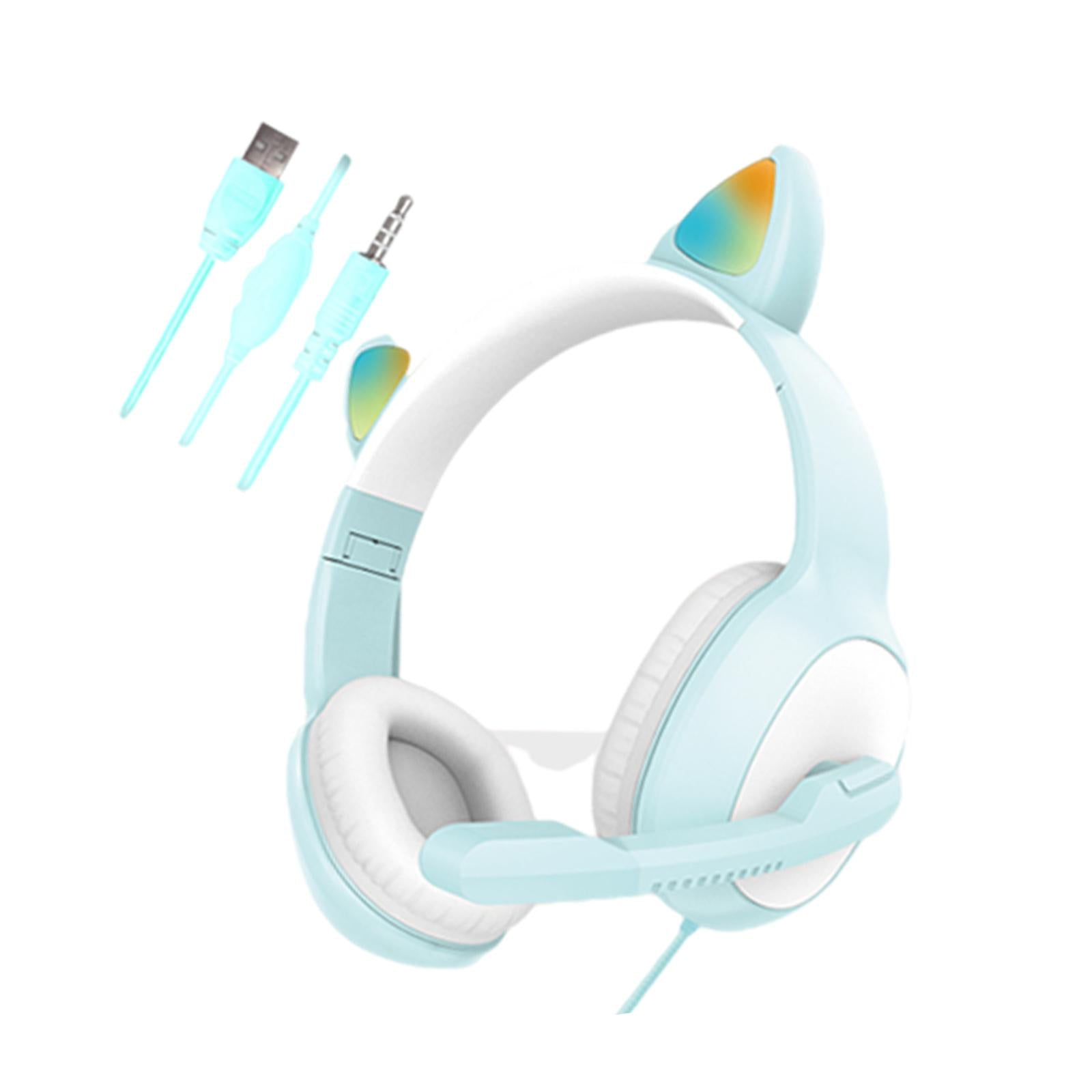 USB Cat Ear Wired Headset for PC Games Laptop TV Smartphones blue