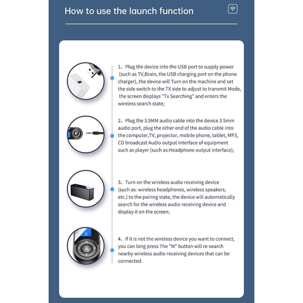 Large LCD screen design, Bluetooth transmitter can freely choose the Bluetooth headset or speaker to connect.