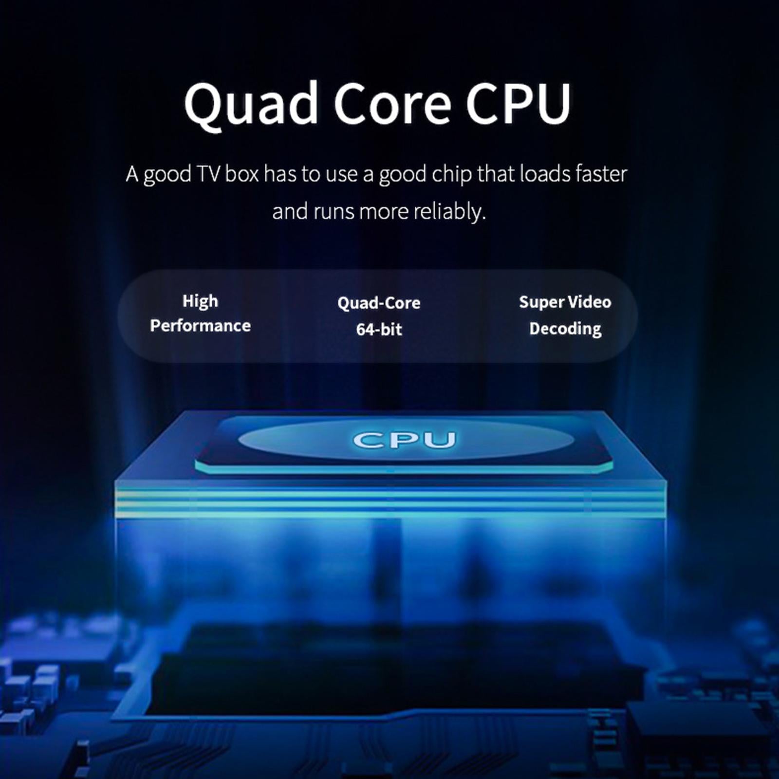 CPU:for Amlogic S905X up to 1.5 GHz, Quad core for ARM Cortex-A53