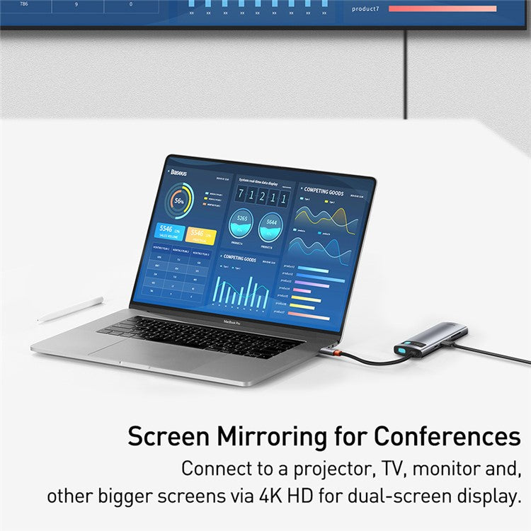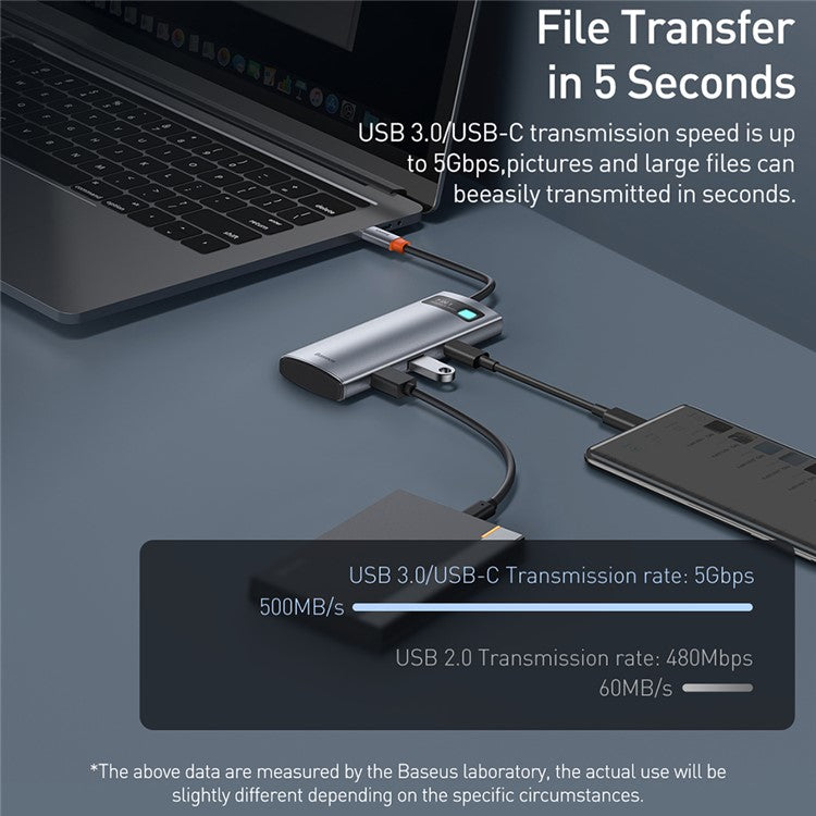 BASEUS Metal Gleam Series 7-in-1 Multifunctional Type-C Hub Docking Station - Grey