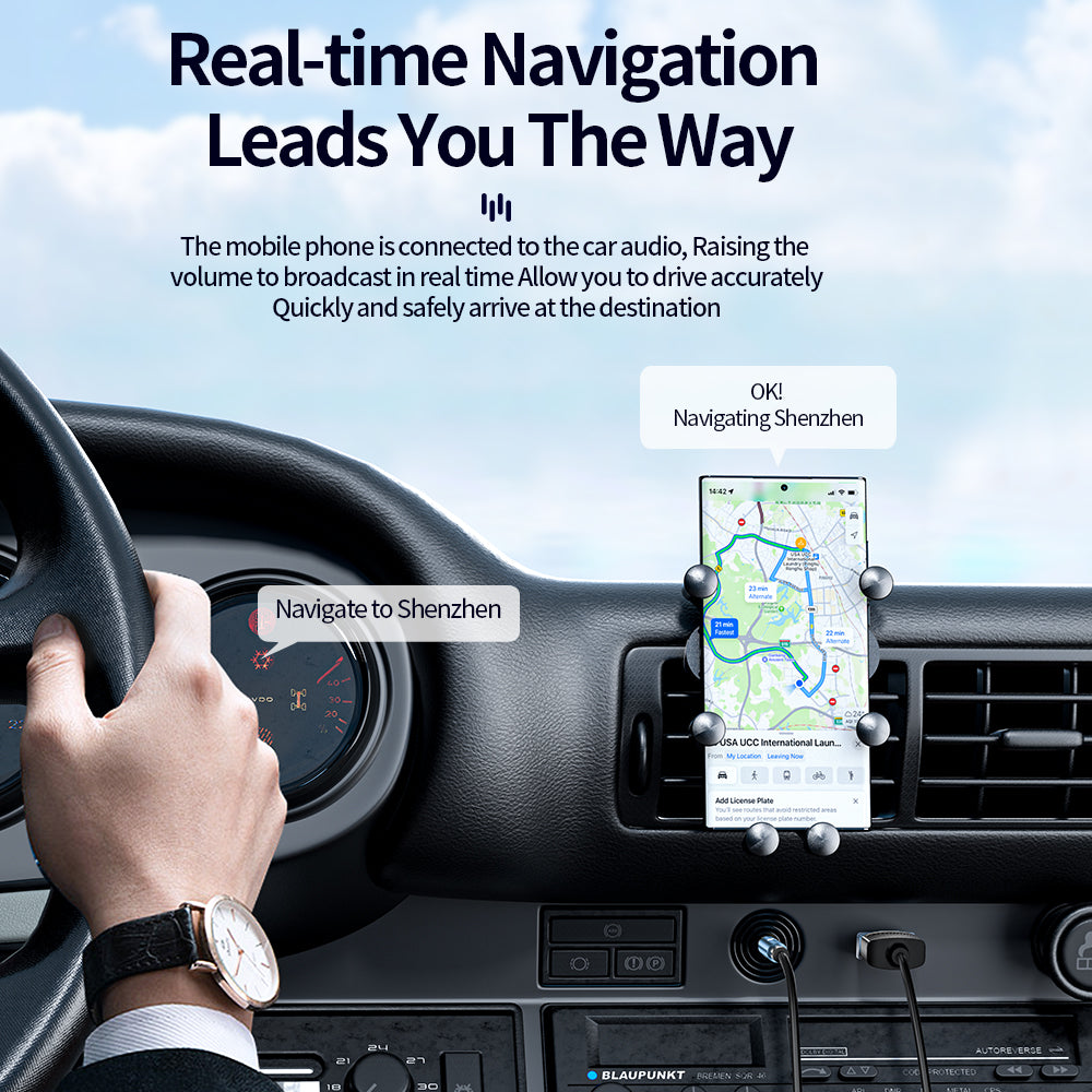 - With the help of this compact Aux Bluetooth car kit, you don’t have to look down at the phone on the move. Have a safe driving experience
