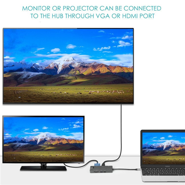 - 9-in-1 Type-C Expansion Dock USB Hub: Versatile connectivity with Type-C to USB-C, 2x USB 3.0 ports, SD/TF card slot, 3.5mm audio jack, HD, VGA, and RJ45 Gigabit Ethernet