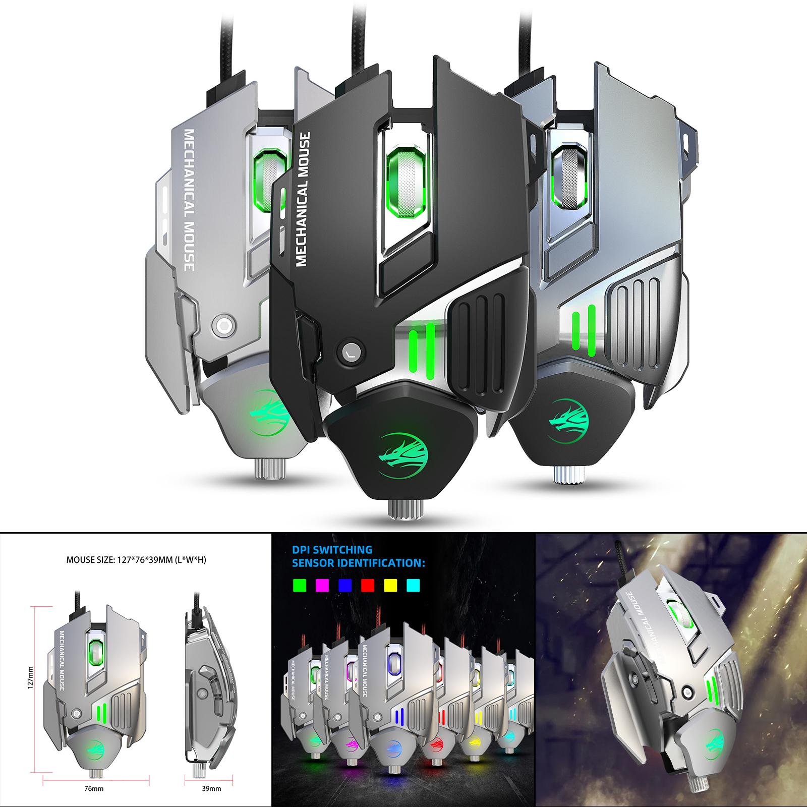 Gaming Mouse 7 Buttons 7200DPI Backlit for Computer Laptop Desktop PC Silver