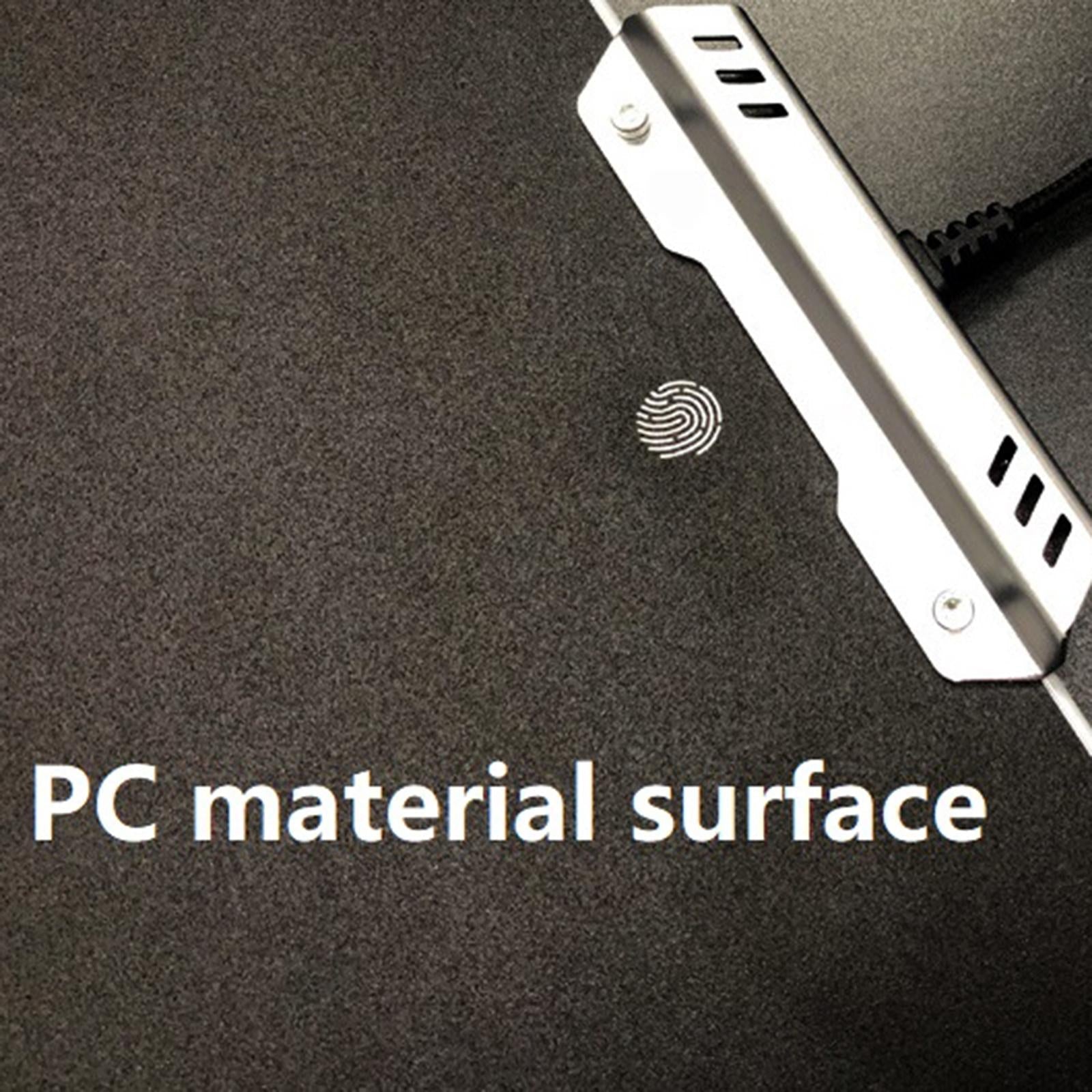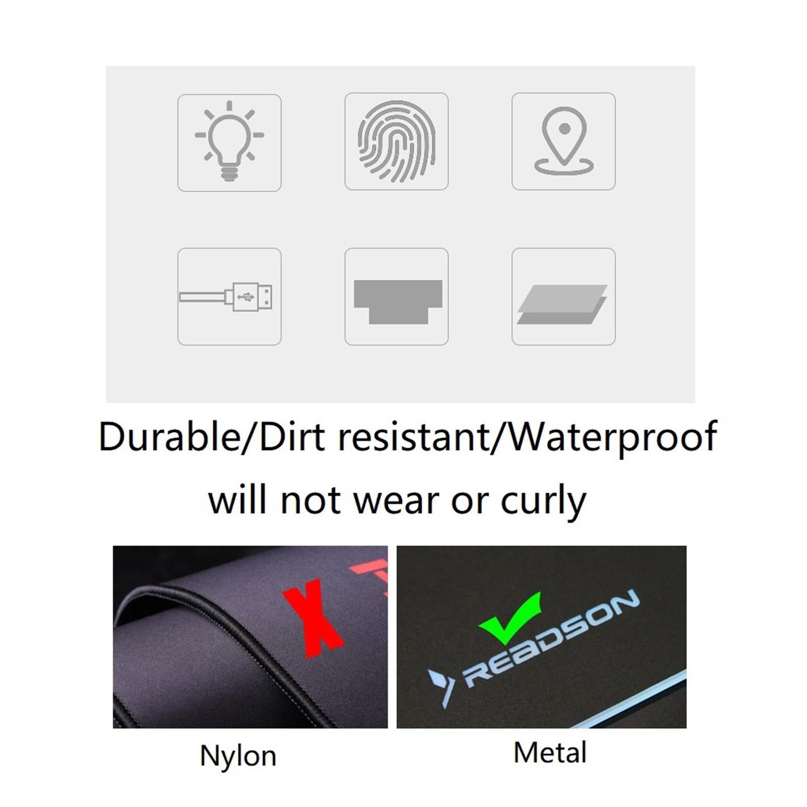 Mouse pad features non-slip metal and textured surface, precise positioning and tracking. Small rubber pads on the four corners of the bottom.