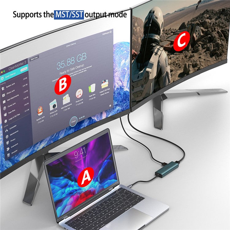 ONTEN UC126 5-in-1 Type-C to Dual HDMI+2xUSB2.0+PD3.0 USB Hub Docking Station