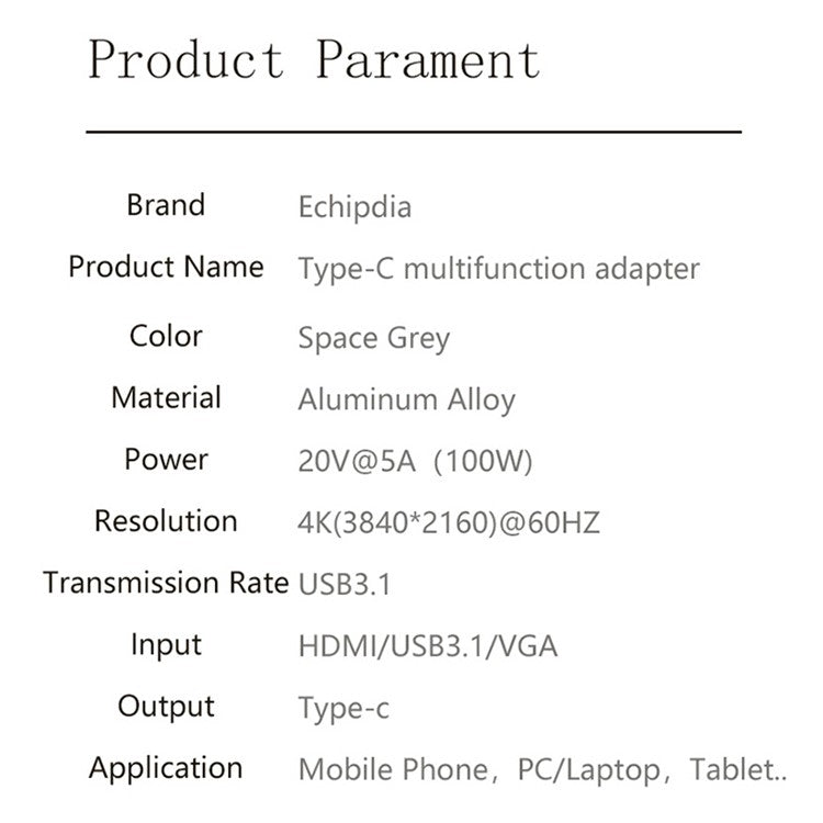 - Function: Extension hub, Audio Video Transmission, Data Transmission, Quick Charging