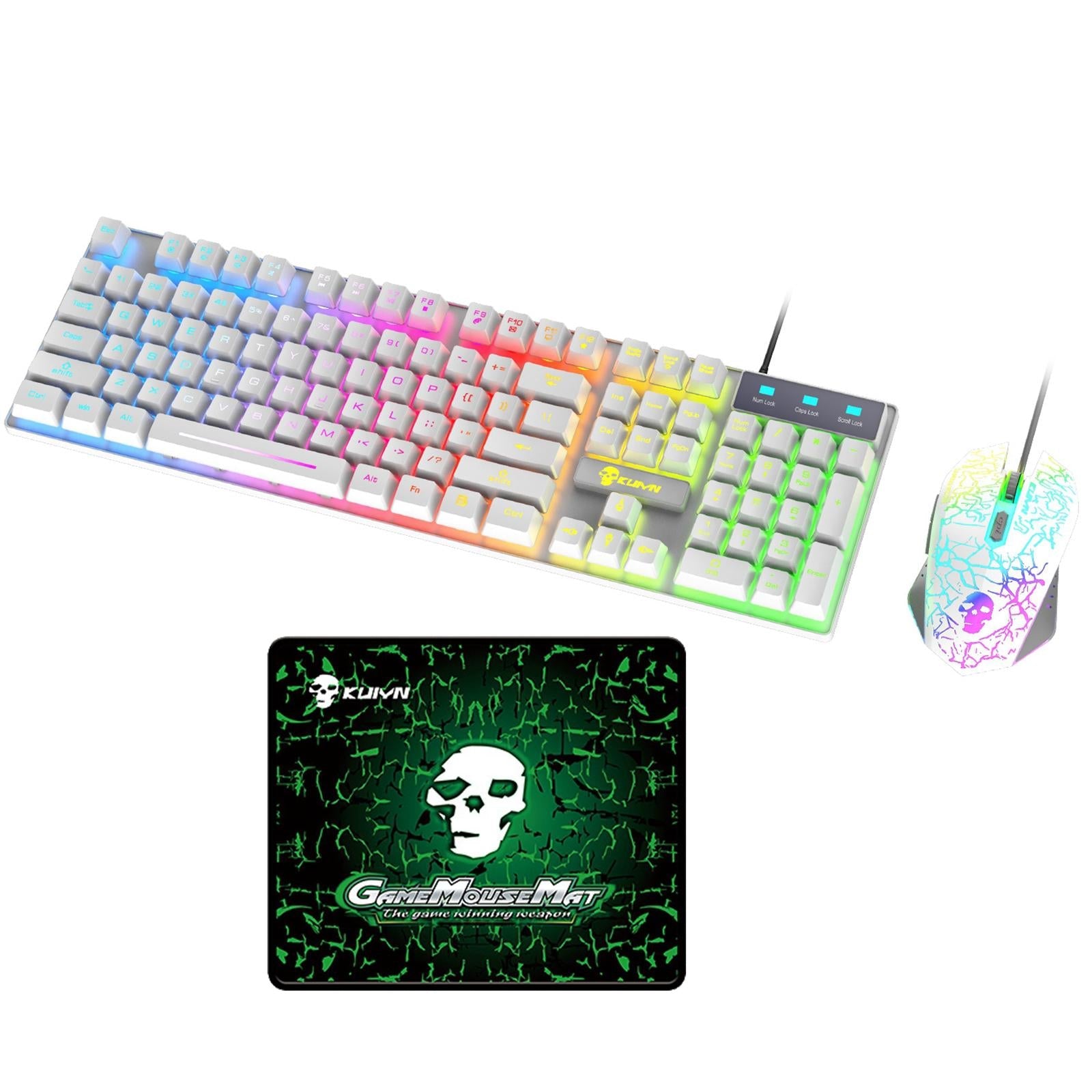 USB Wired RGB Backlit Keyboard Mouse Set Rainbow Backlit White RGB